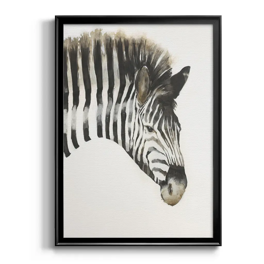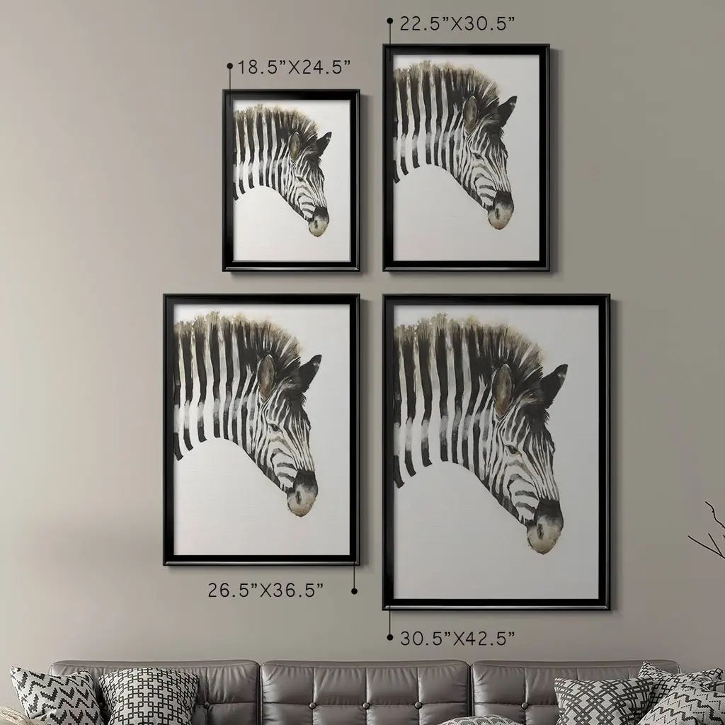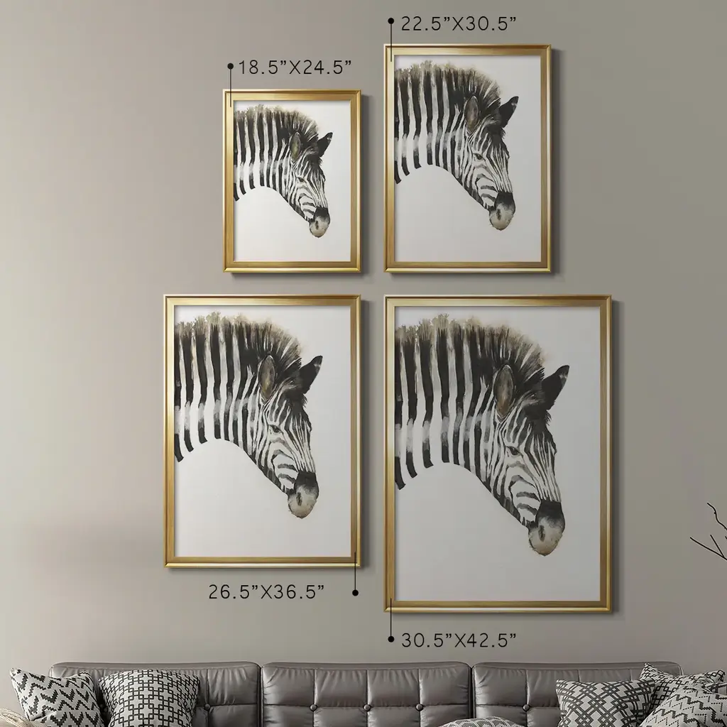 Zebra Stripes Premium Framed Print - Ready to Hang A Premium Framed Print created to last. Framed in distressed wood and available in an array of sizes and colors Featuring a beveled a solid wood stretcher bar, each piece comes ready to hand 4 SIZES AVAILABLE 30.5''X42.5'' - Overall Size 26.5'X36.5'' - Overall Size 22.5''x30.5'' - Overall Size 18.5''x24.5'' - Overall Size Each piece is made to order. Each piece comes with hanging hardware. Made in the USA Ready to Hang