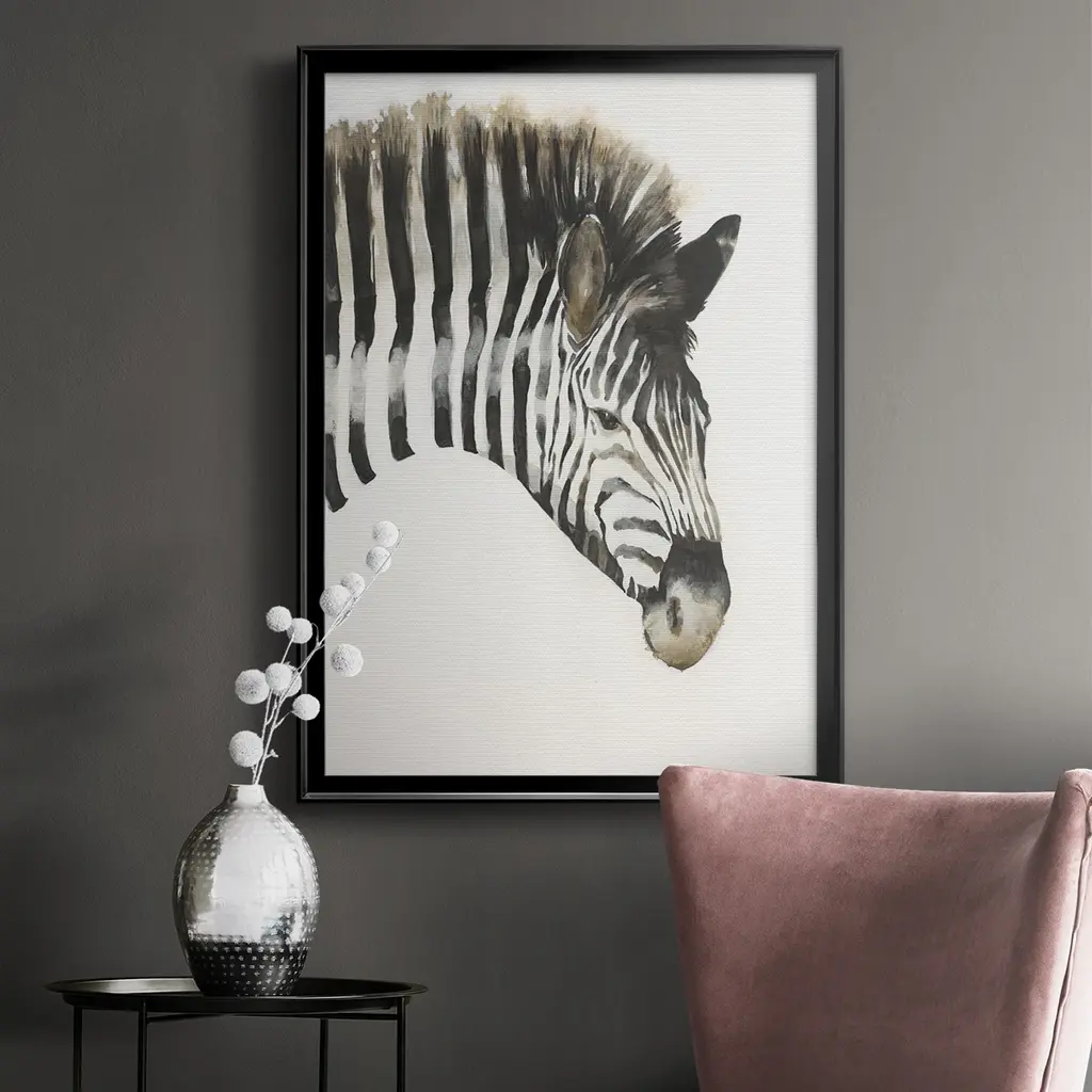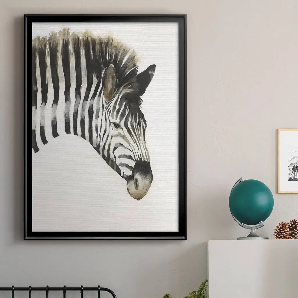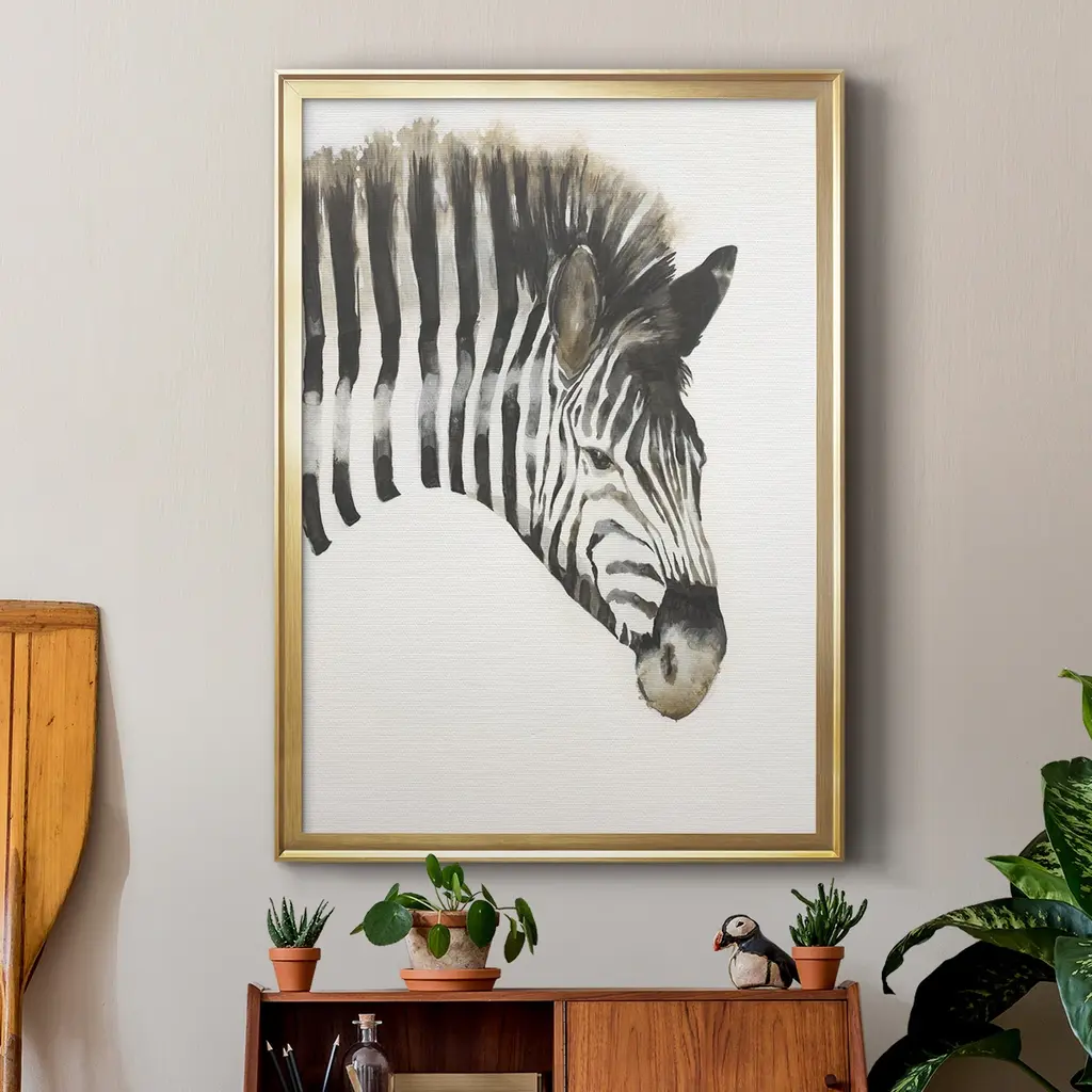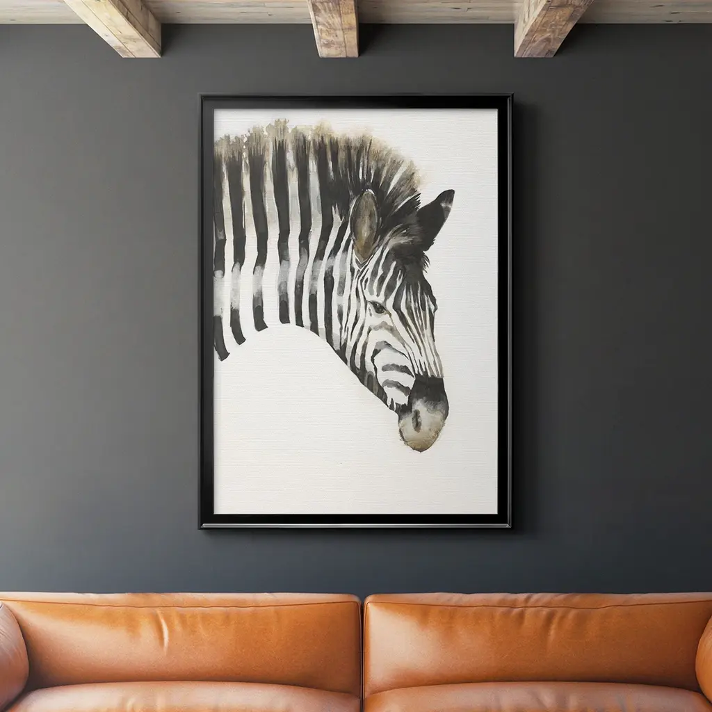 Zebra Stripes Premium Framed Print - Ready to Hang A Premium Framed Print created to last. Framed in distressed wood and available in an array of sizes and colors Featuring a beveled a solid wood stretcher bar, each piece comes ready to hand 4 SIZES AVAILABLE 30.5''X42.5'' - Overall Size 26.5'X36.5'' - Overall Size 22.5''x30.5'' - Overall Size 18.5''x24.5'' - Overall Size Each piece is made to order. Each piece comes with hanging hardware. Made in the USA Ready to Hang