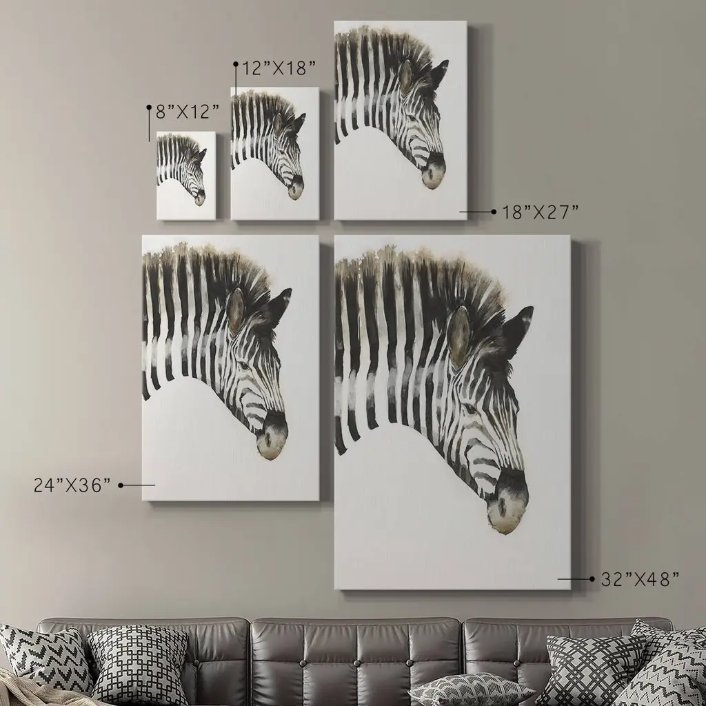 Zebra Stripes Premium Gallery Wrapped Canvas - Ready to Hang A premium hand stretched gallery wrapped canvas print created to last. Featuring a beveled a solid wood stretcher bar, each piece comes ready to hand 6 SIZES AVAILABLE 8''X12'' - Overall Size 12''X18'' - Overall Size 18''X27'' - Overall Size 24''x36'' - Overall Size 32''x48'' - Overall Size 40''x60'' - Overall Size Each piece is made to order. Built to Last Each piece comes ready to hang Solid wood stretcher Fade and Water resistant Made domestically