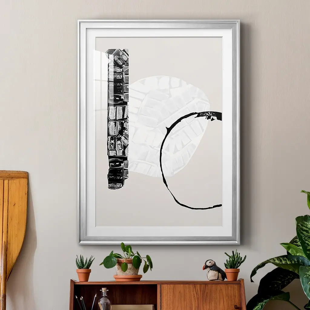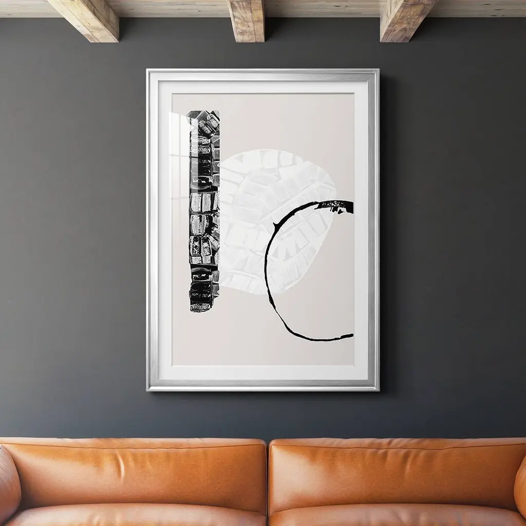 Zen Shapes I Premium Framed Print - Ready to Hang A Premium Framed Print created to last. Framed in distressed wood and available in an array of sizes and colors Featuring a beveled a solid wood stretcher bar, each piece comes ready to hand 4 SIZES AVAILABLE 30.5''X42.5'' - Overall Size 26.5'X36.5'' - Overall Size 22.5''x30.5'' - Overall Size 18.5''x24.5'' - Overall Size Each piece is made to order. Each piece comes with hanging hardware. Made in the USA Ready to Hang Giclee Paper Print Acrylic Glass Beveled Matt Board