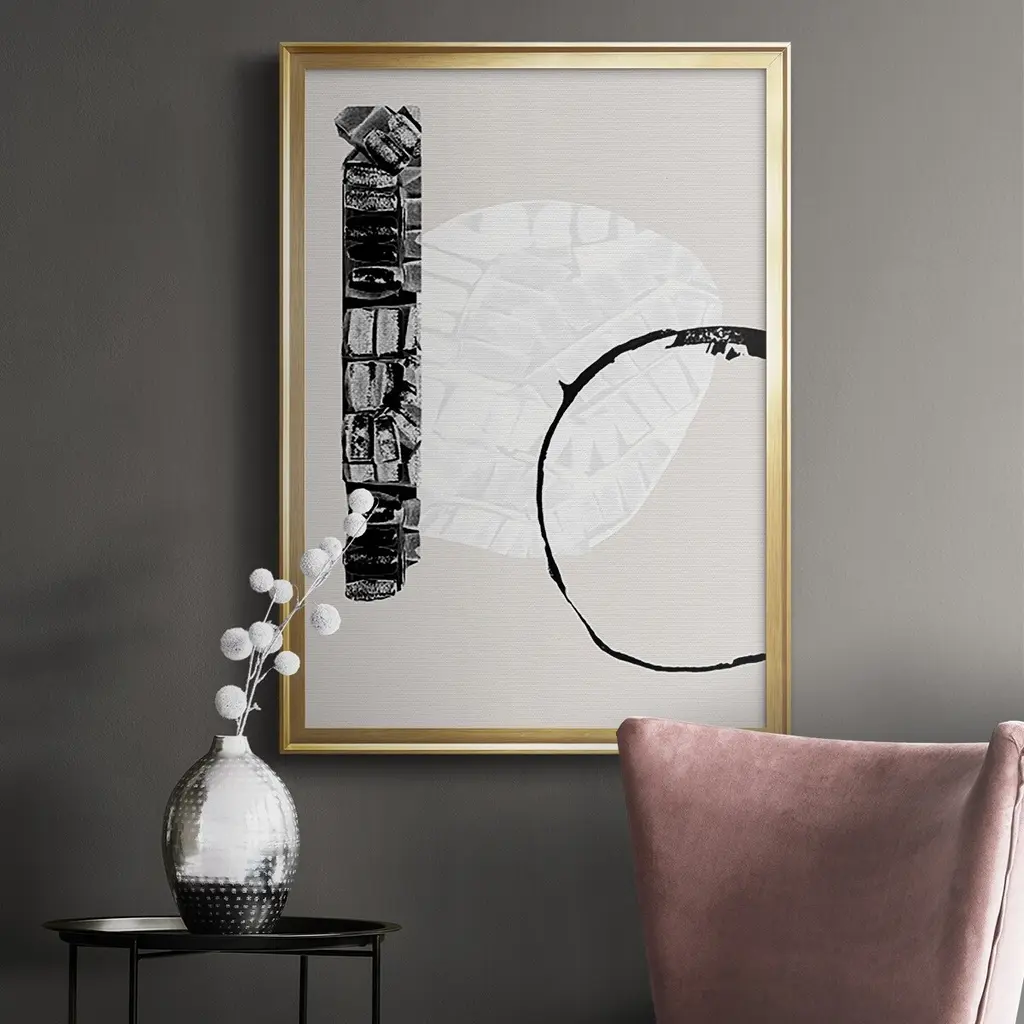 Zen Shapes I Premium Framed Print - Ready to Hang A Premium Framed Print created to last. Framed in distressed wood and available in an array of sizes and colors Featuring a beveled a solid wood stretcher bar, each piece comes ready to hand 4 SIZES AVAILABLE 30.5''X42.5'' - Overall Size 26.5'X36.5'' - Overall Size 22.5''x30.5'' - Overall Size 18.5''x24.5'' - Overall Size Each piece is made to order. Each piece comes with hanging hardware. Made in the USA Ready to Hang