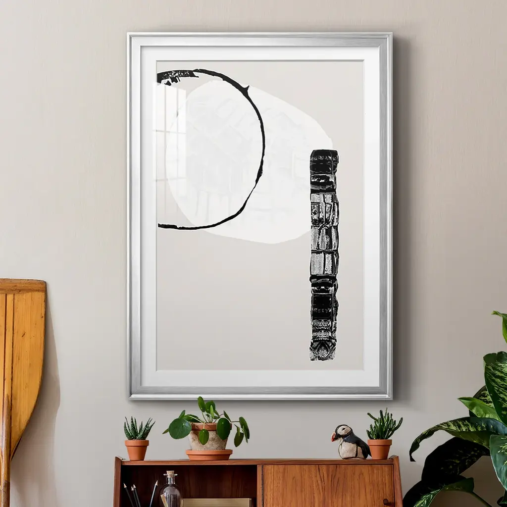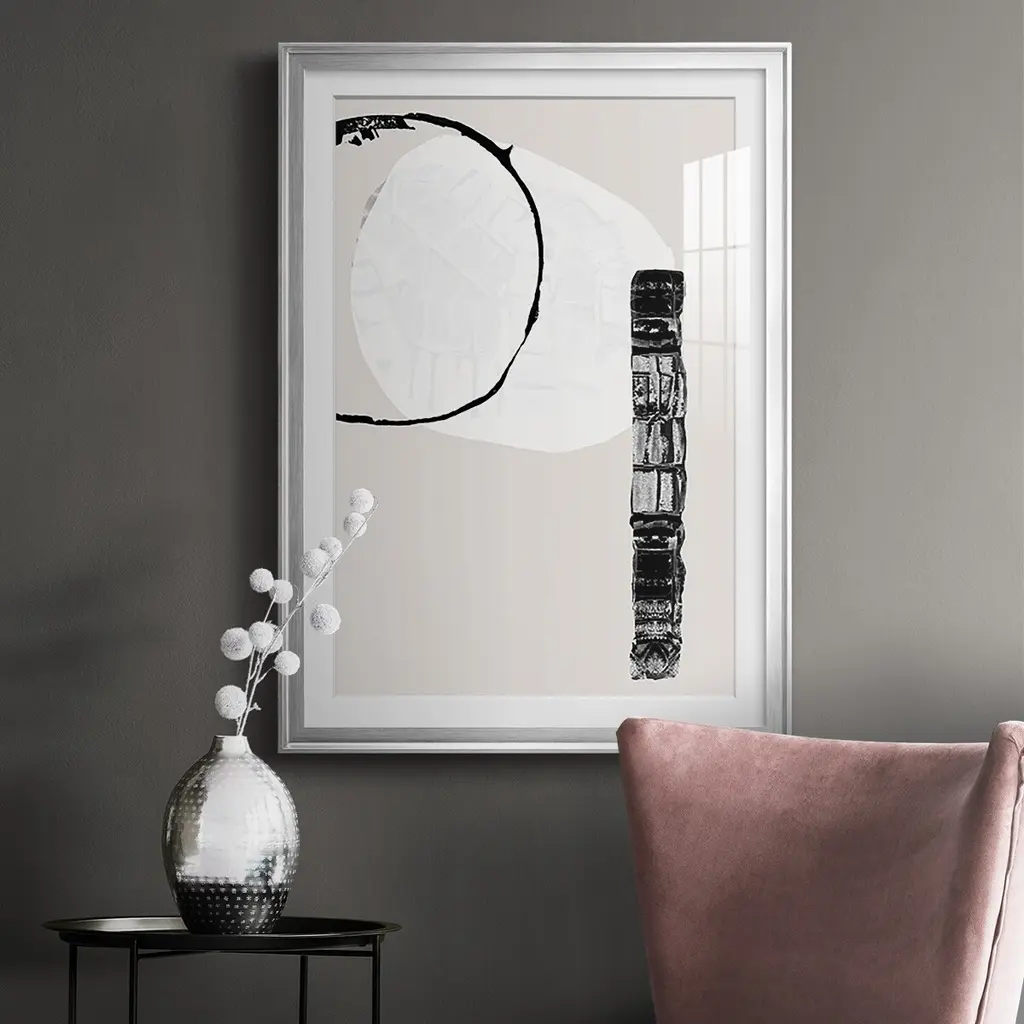 Zen Shapes II Premium Framed Print - Ready to Hang A Premium Framed Print created to last. Framed in distressed wood and available in an array of sizes and colors Featuring a beveled a solid wood stretcher bar, each piece comes ready to hand 4 SIZES AVAILABLE 30.5''X42.5'' - Overall Size 26.5'X36.5'' - Overall Size 22.5''x30.5'' - Overall Size 18.5''x24.5'' - Overall Size Each piece is made to order. Each piece comes with hanging hardware. Made in the USA Ready to Hang Giclee Paper Print Acrylic Glass Beveled Matt Board