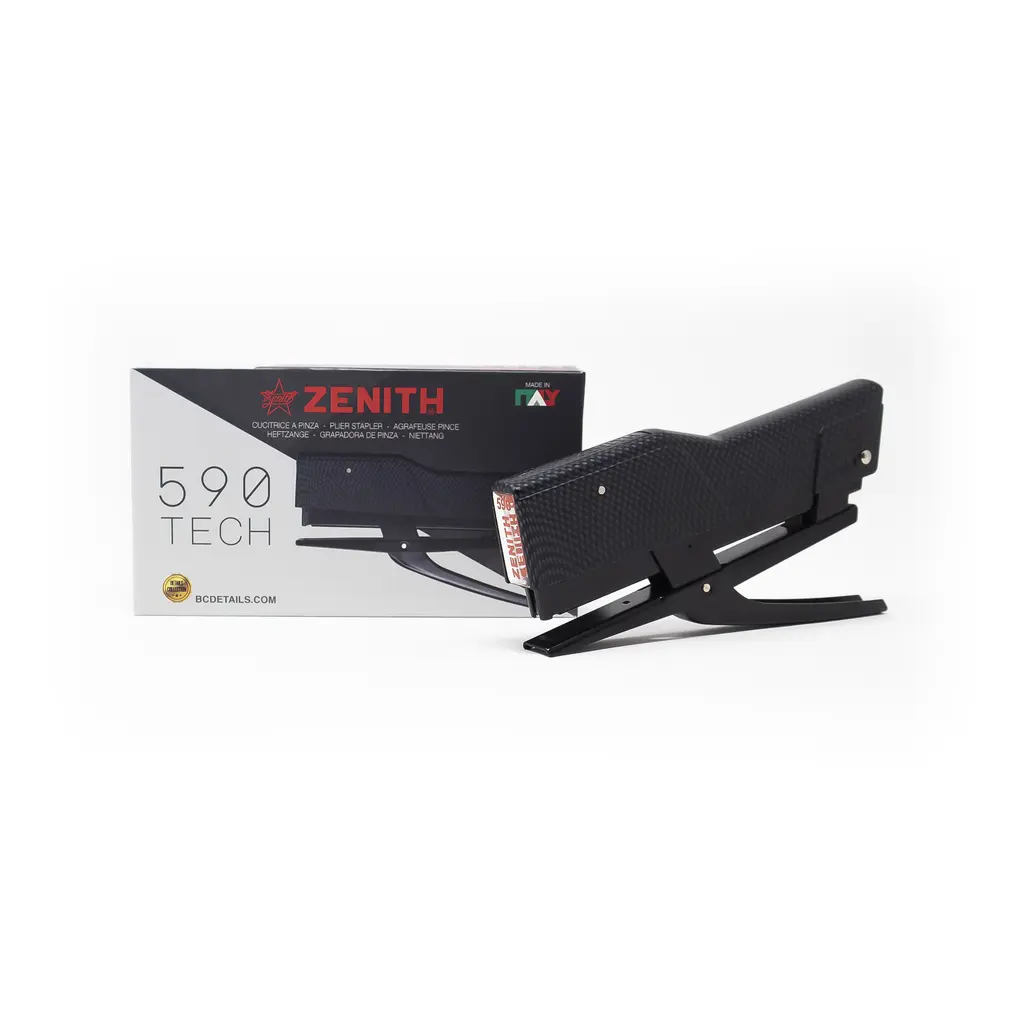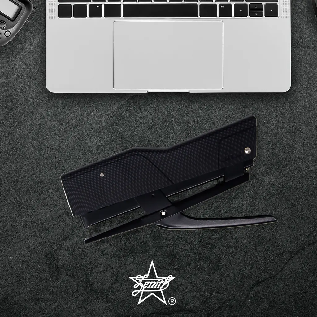 Inspired by industrial design and high-tech products, the Zenith 590 Tech Stapler enhances your productivity and makes your desk look good at the same time. Italian company Balma, Capoduri & C. carefully manufactures the Zenith series to last a lifetime. This stapler comes with a metal body and metal mechanical parts, a shockproof ABS plastic cap, and lead-free enamel painting. The high-quality finish protects the stapler from daily wear and also keeps it safe from corrosion. Designed with an ergonomic handle, this Zenith stapler is easy to use. The handle allows the user to smoothly and quickly staple up to 30 sheets of paper with 6 mm staples. This collection comprises three cap and body paint combinations with a more technical look.