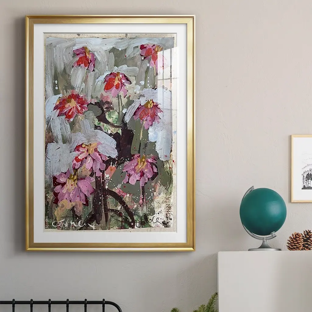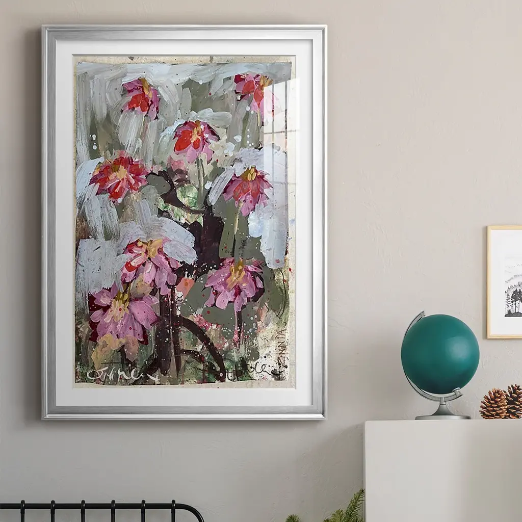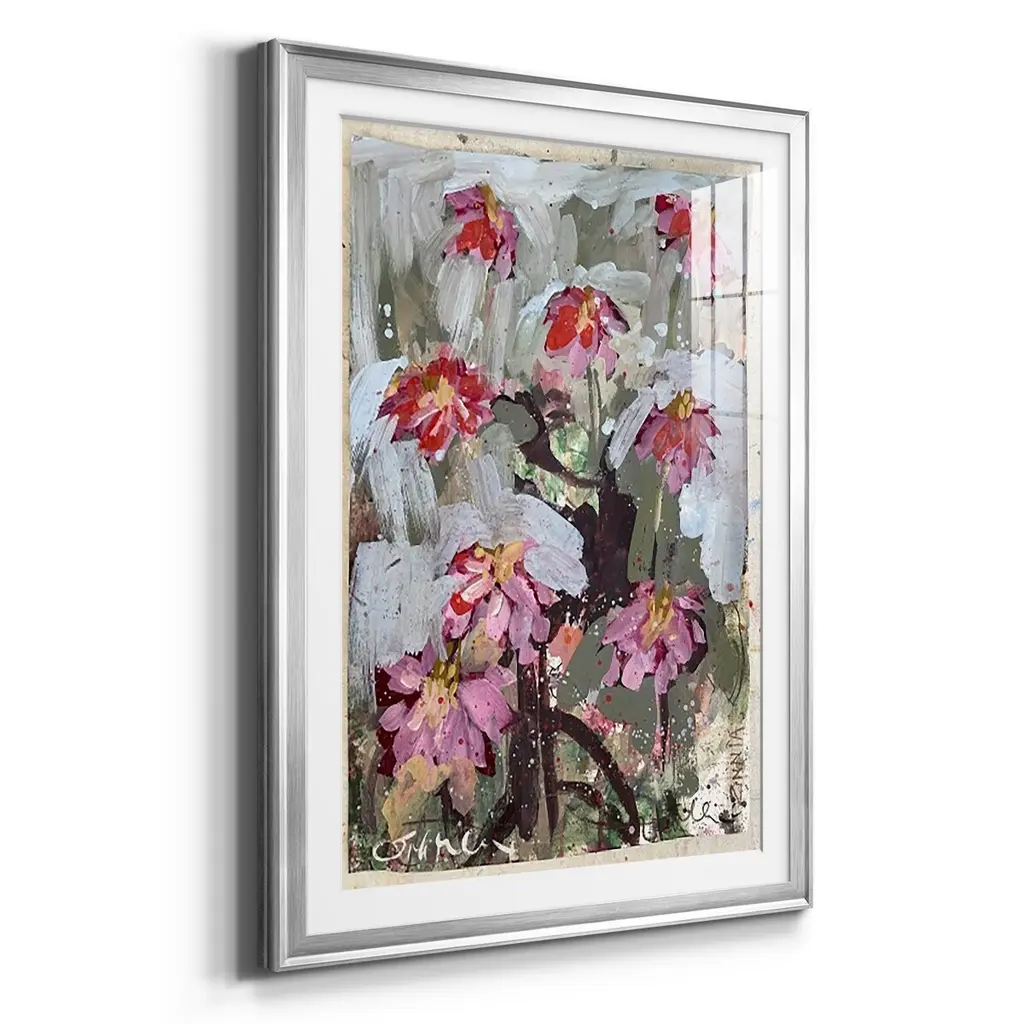 Zinnia I Premium Framed Print - Ready to Hang A Premium Framed Print created to last. Framed in distressed wood and available in an array of sizes and colors Featuring a beveled a solid wood stretcher bar, each piece comes ready to hand 4 SIZES AVAILABLE 30.5''X42.5'' - Overall Size 26.5'X36.5'' - Overall Size 22.5''x30.5'' - Overall Size 18.5''x24.5'' - Overall Size Each piece is made to order. Each piece comes with hanging hardware. Made in the USA Ready to Hang Giclee Paper Print Acrylic Glass Beveled Matt Board