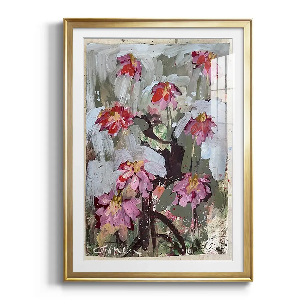 Zinnia I Premium Framed Print - Ready to Hang A Premium Framed Print created to last. Framed in distressed wood and available in an array of sizes and colors Featuring a beveled a solid wood stretcher bar, each piece comes ready to hand 4 SIZES AVAILABLE 30.5''X42.5'' - Overall Size 26.5'X36.5'' - Overall Size 22.5''x30.5'' - Overall Size 18.5''x24.5'' - Overall Size Each piece is made to order. Each piece comes with hanging hardware. Made in the USA Ready to Hang Giclee Paper Print Acrylic Glass Beveled Matt Board