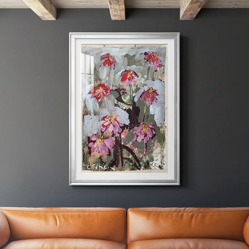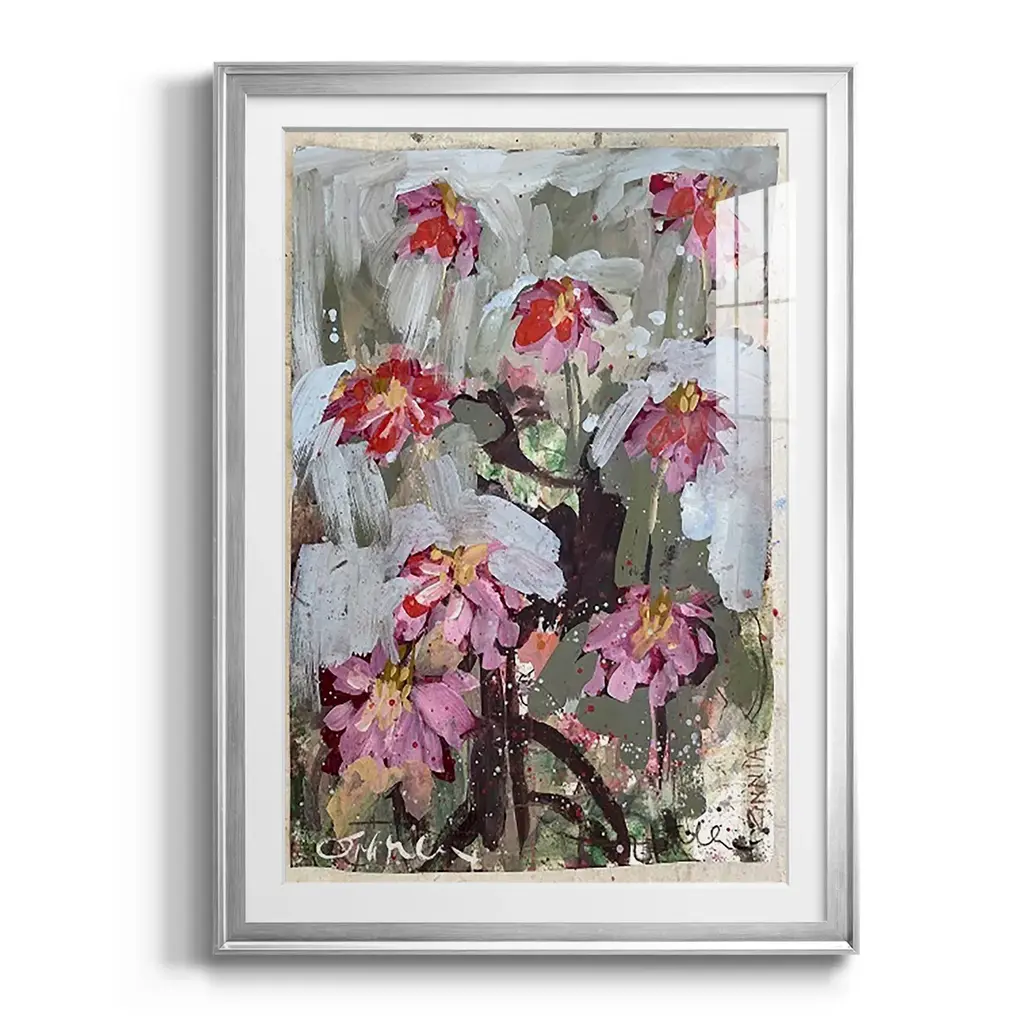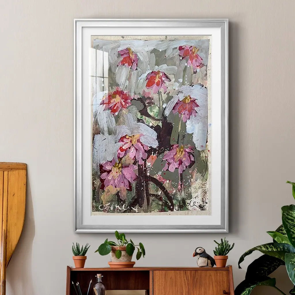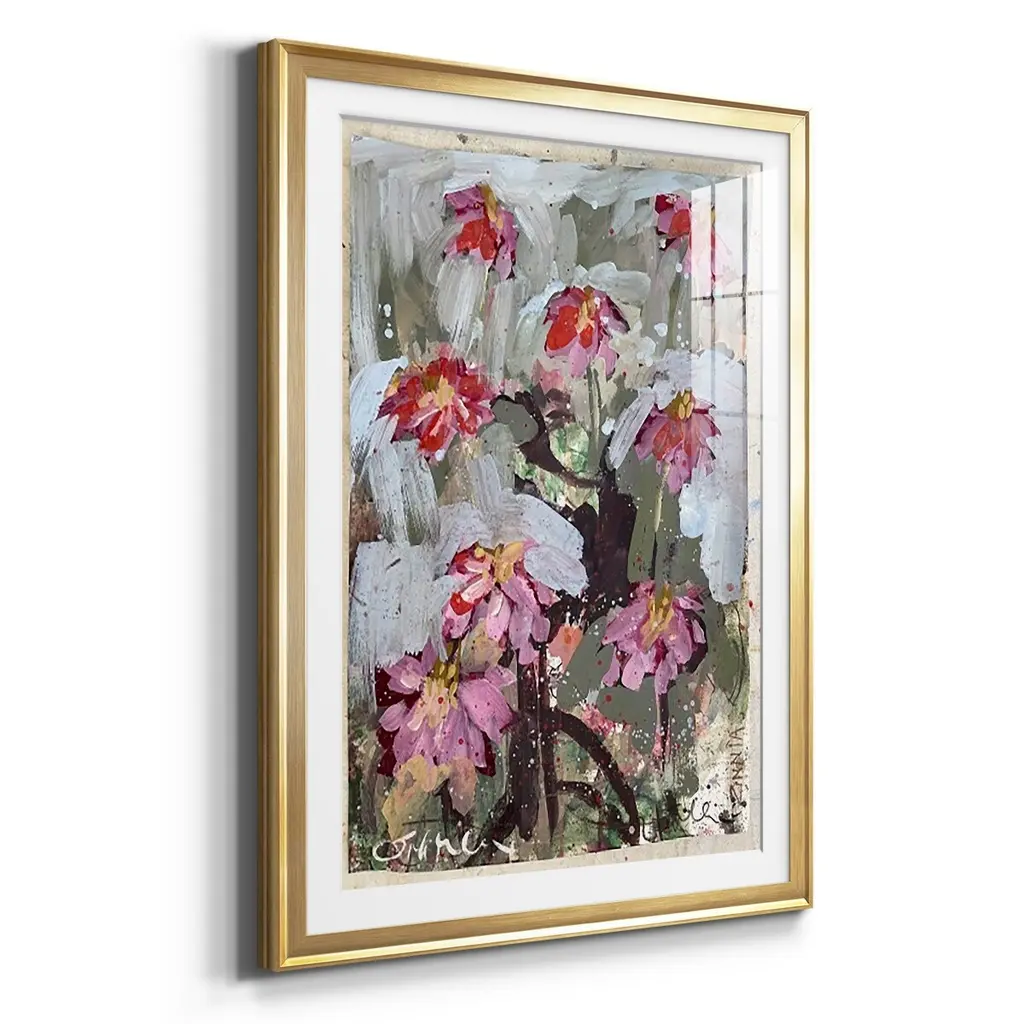 Zinnia I Premium Framed Print - Ready to Hang A Premium Framed Print created to last. Framed in distressed wood and available in an array of sizes and colors Featuring a beveled a solid wood stretcher bar, each piece comes ready to hand 4 SIZES AVAILABLE 30.5''X42.5'' - Overall Size 26.5'X36.5'' - Overall Size 22.5''x30.5'' - Overall Size 18.5''x24.5'' - Overall Size Each piece is made to order. Each piece comes with hanging hardware. Made in the USA Ready to Hang Giclee Paper Print Acrylic Glass Beveled Matt Board