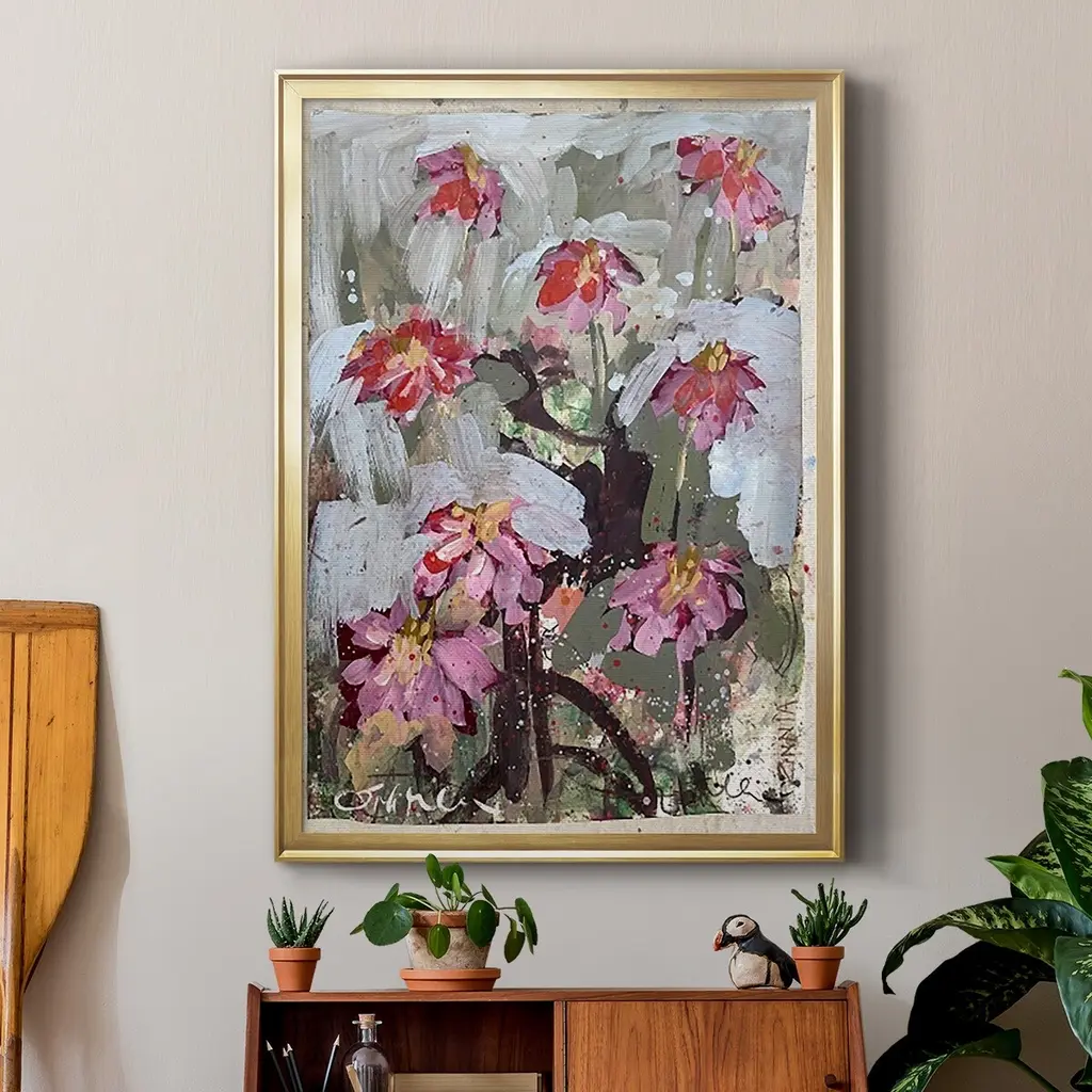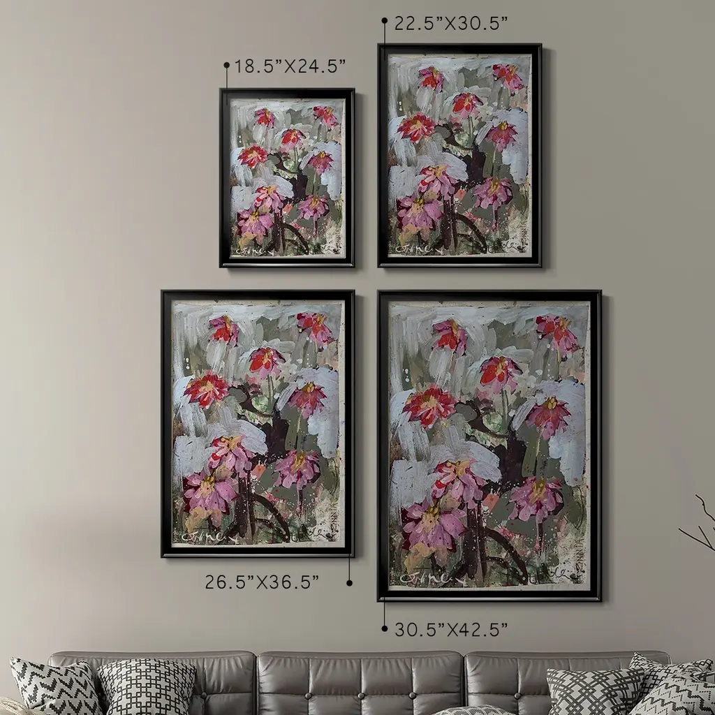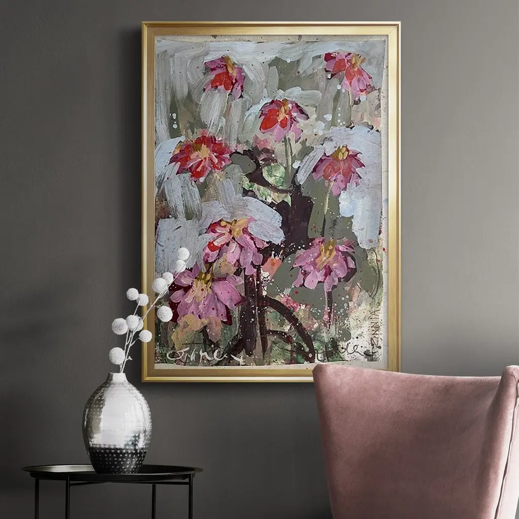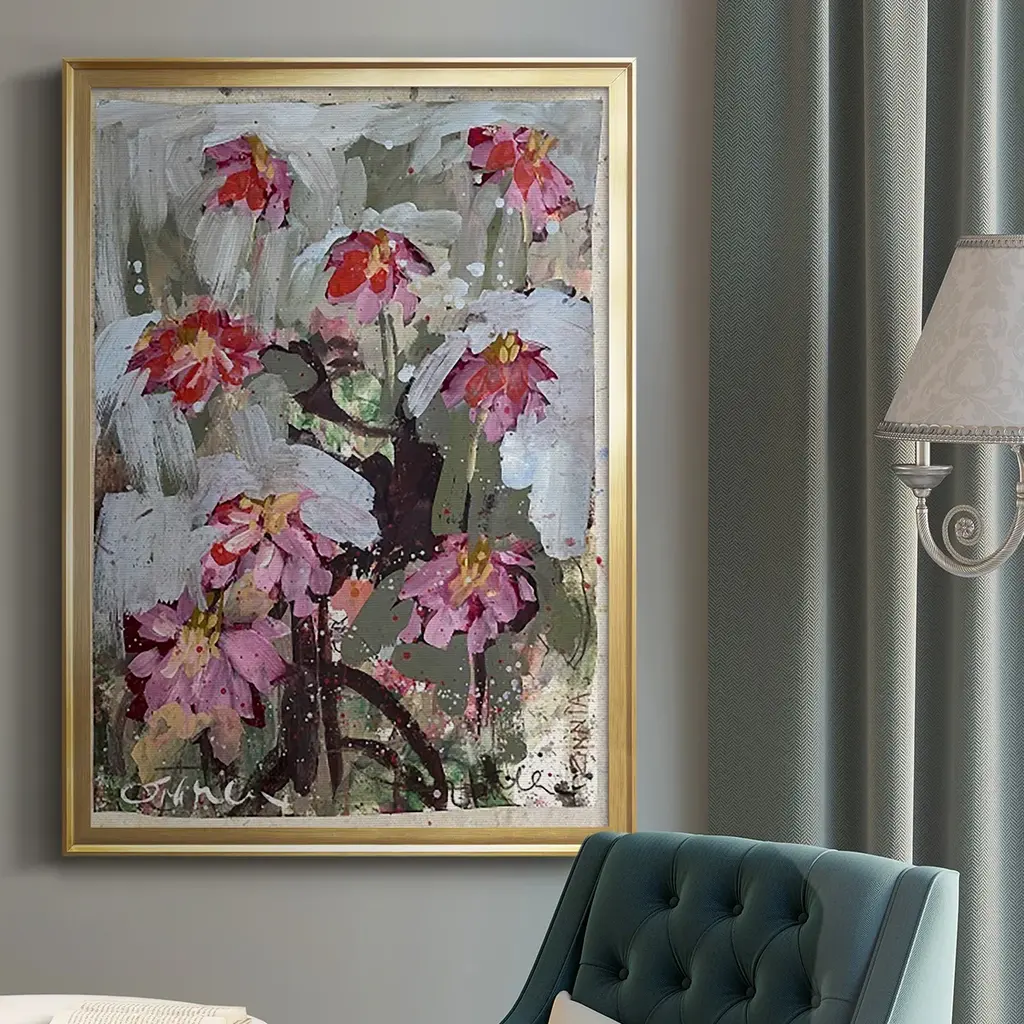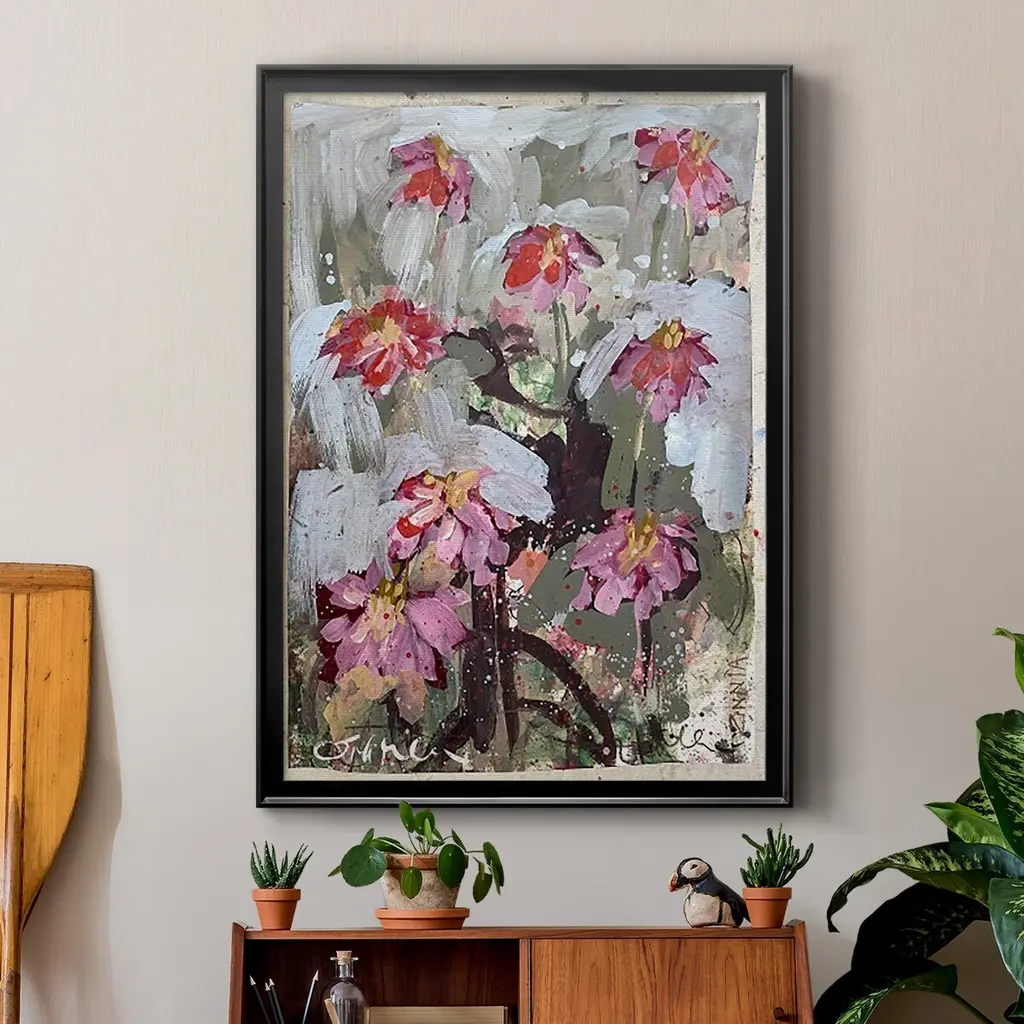 Zinnia I Premium Framed Print - Ready to Hang A Premium Framed Print created to last. Framed in distressed wood and available in an array of sizes and colors Featuring a beveled a solid wood stretcher bar, each piece comes ready to hand 4 SIZES AVAILABLE 30.5''X42.5'' - Overall Size 26.5'X36.5'' - Overall Size 22.5''x30.5'' - Overall Size 18.5''x24.5'' - Overall Size Each piece is made to order. Each piece comes with hanging hardware. Made in the USA Ready to Hang