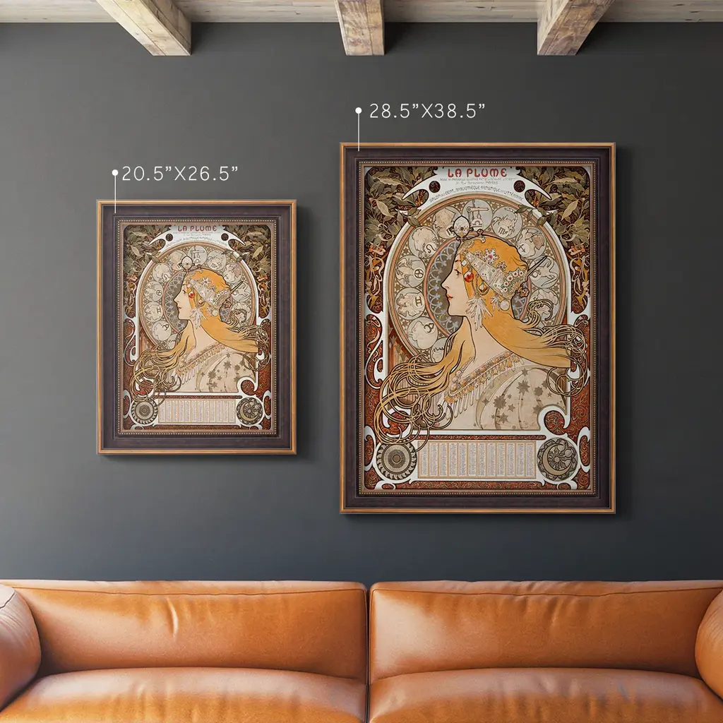 Zodiac Premium Framed Canvas- Ready to Hang A Premium Framed Canvas created to last. Framed in distressed wood and available in an array of sizes and colors Featuring a beveled a solid wood stretcher bar, each piece comes ready to hand 3 SIZES AVAILABLE 16''X20'' - Overall Size 18'X27'' - Overall Size 24''x36'' - Overall Size Each piece is made to order. Each piece comes with hanging hardware. Made in the USA Ready to Hang Giclee Paper Print Acrylic Glass Beveled Matt Board