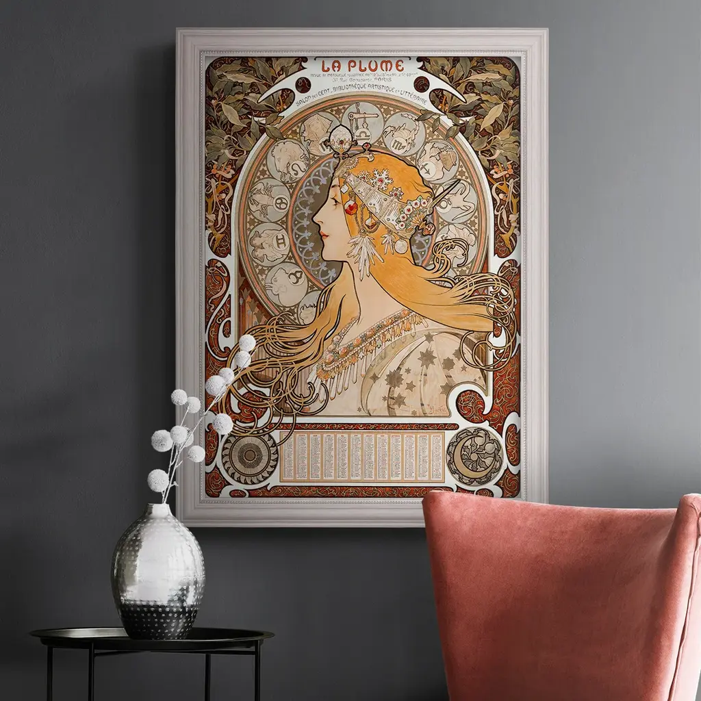 Zodiac Premium Framed Canvas- Ready to Hang A Premium Framed Canvas created to last. Framed in distressed wood and available in an array of sizes and colors Featuring a beveled a solid wood stretcher bar, each piece comes ready to hand 3 SIZES AVAILABLE 16''X20'' - Overall Size 18'X27'' - Overall Size 24''x36'' - Overall Size Each piece is made to order. Each piece comes with hanging hardware. Made in the USA Ready to Hang Giclee Paper Print Acrylic Glass Beveled Matt Board