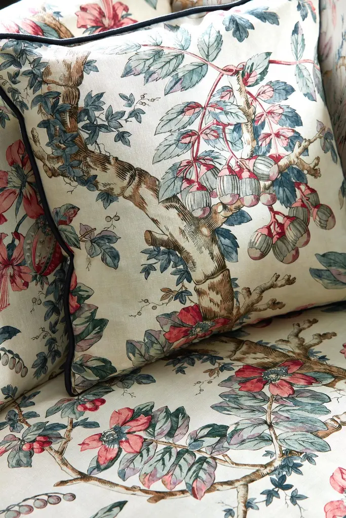 Coromandel Print is named after India’s south-eastern coastline famed for traditional Indian hand blocked prints. Retaining the same level of detail as the archive document Coromandel’s entwining branches flowers and the abundance of fruits such as pomegranates allude to the artwork’s customary past. 53% Linen 35% Cotton 12% Nylon. Sold by the yard. Part of the ARCADIAN THAMES Collection. Vertical Repeat: 29.3307086614173 Horizontal Repeat: 55.1181102362205 Aftercare Codes: No Machine Wash - SDC / No Ble / No tumb / C Iron / Iron Rev / SDC (Spec) This item is non-refundable, but swatches are available for purchase. Colors can vary from screen to screen; we recommend ordering a swatch before placing your full size purchase. For any questions, please reach out to swatches@chairish.com
