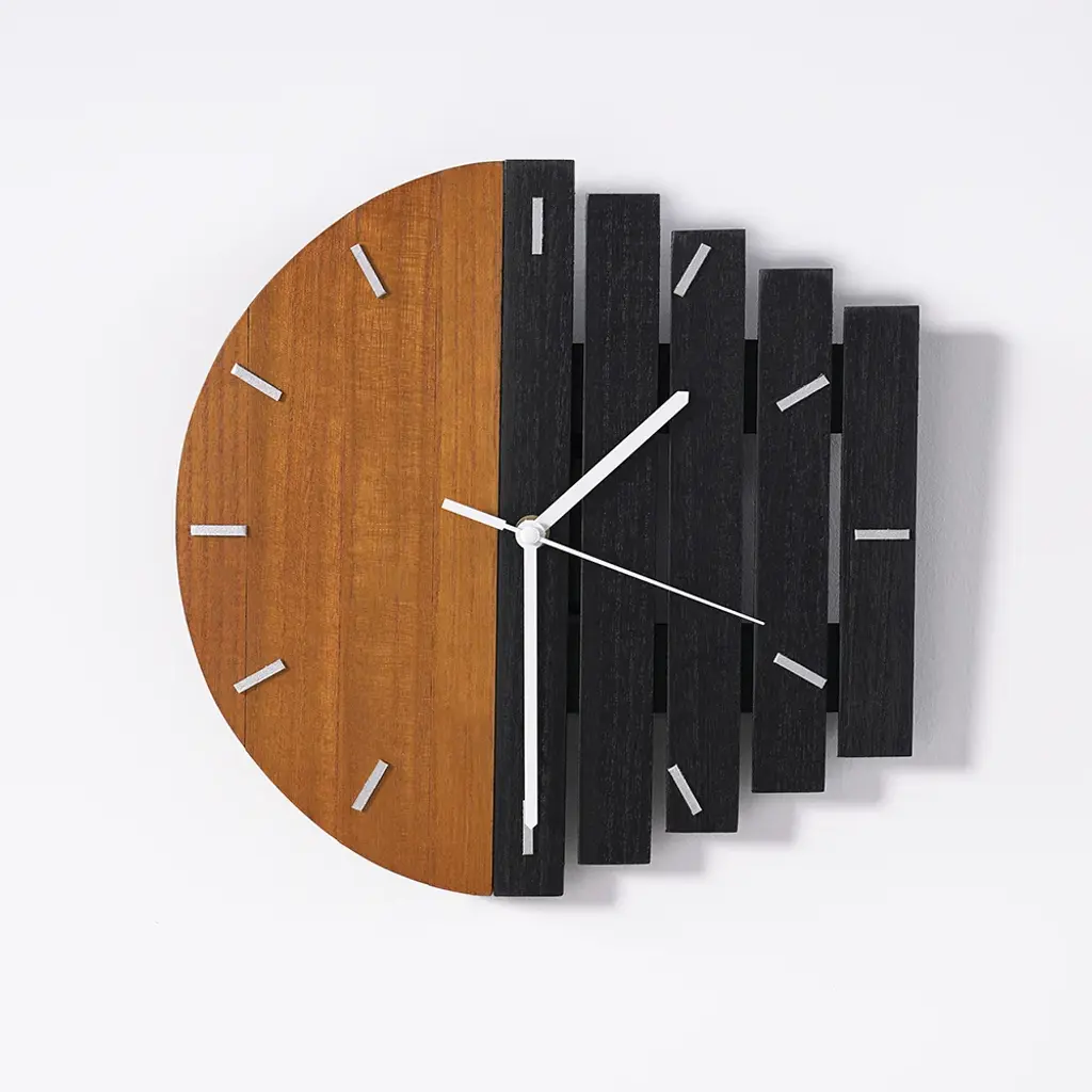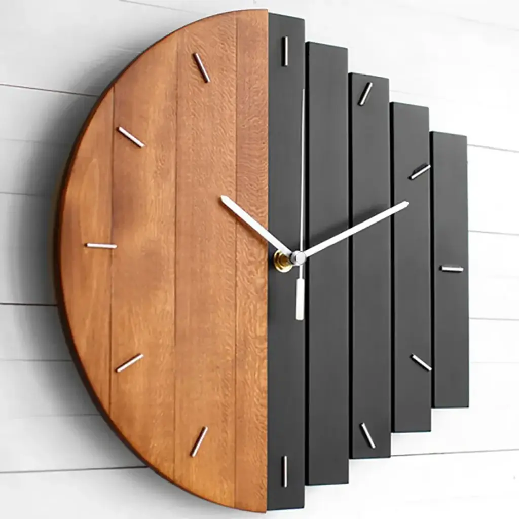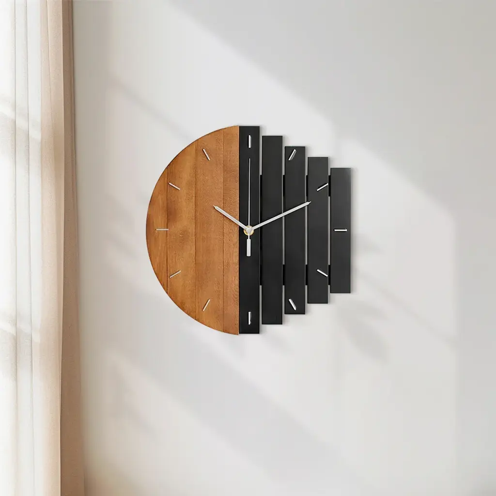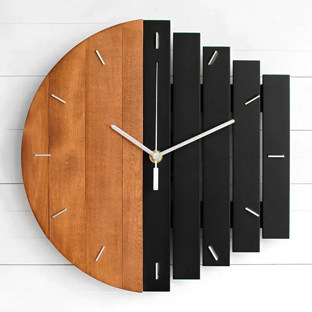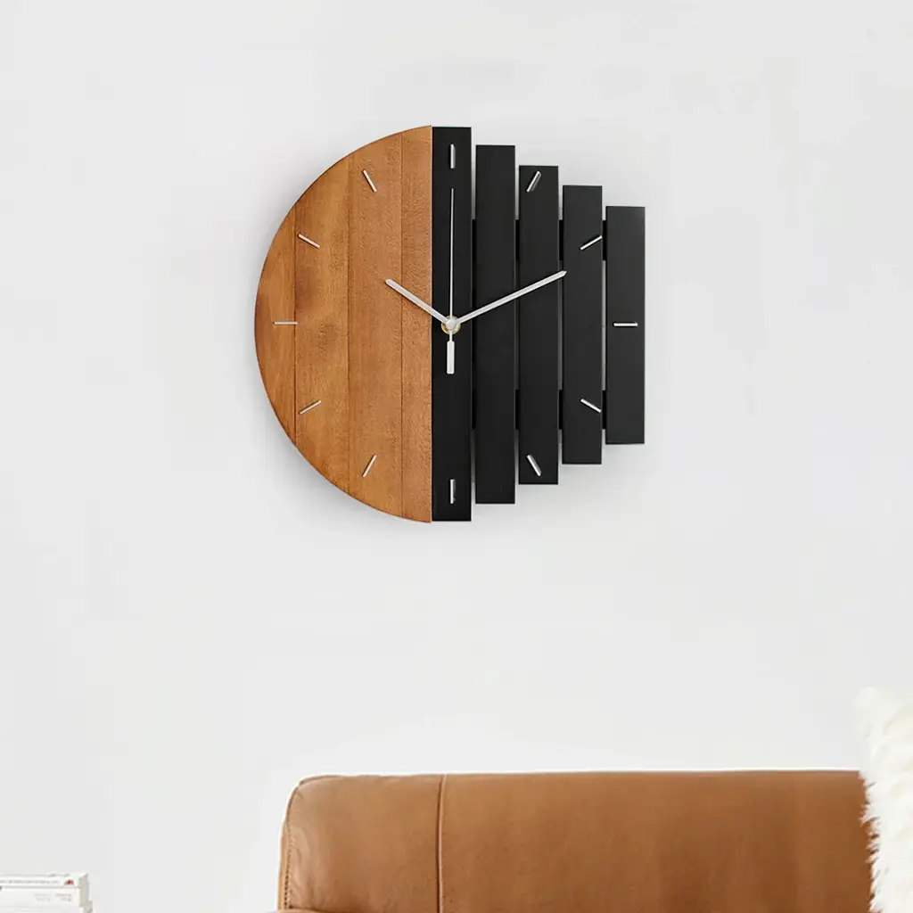 11.8" Rustic Abstract Wood Wall Clock For Living Room Home Hanging Artistic Decor Art