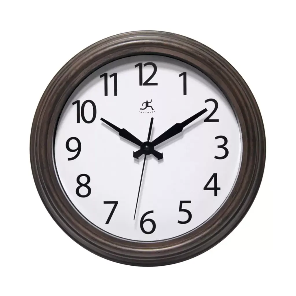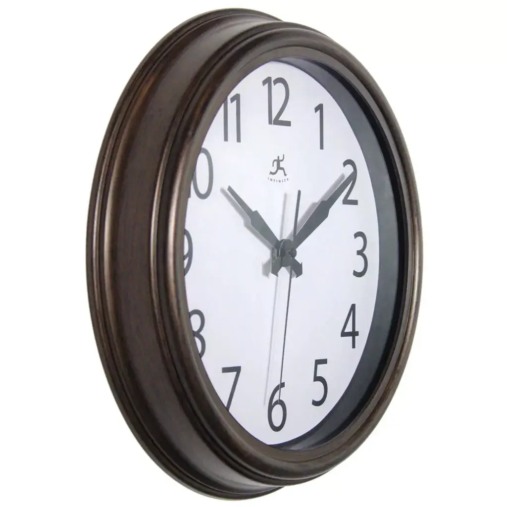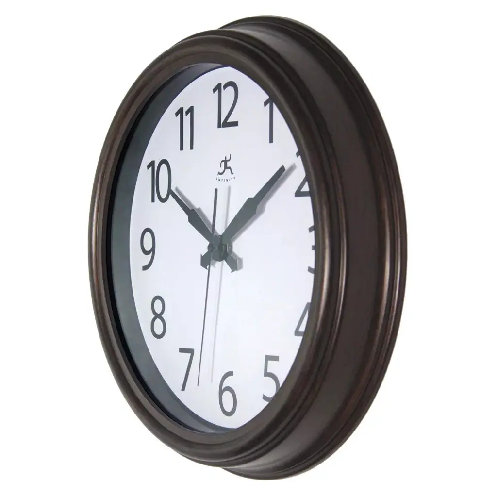 12" Fabrizio Wall Clock Antique Brown - Infinity Instruments: Indoor/outdoor, Modern Decor, Analog Display