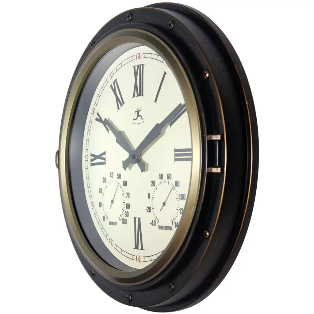 16" Forecaster Indoor/outdoor Wall Clock Bronze - Infinity Instruments: Built-in Hygrometer, Water Resistant