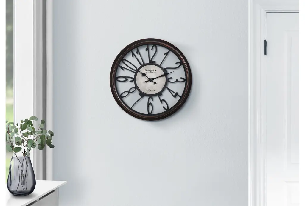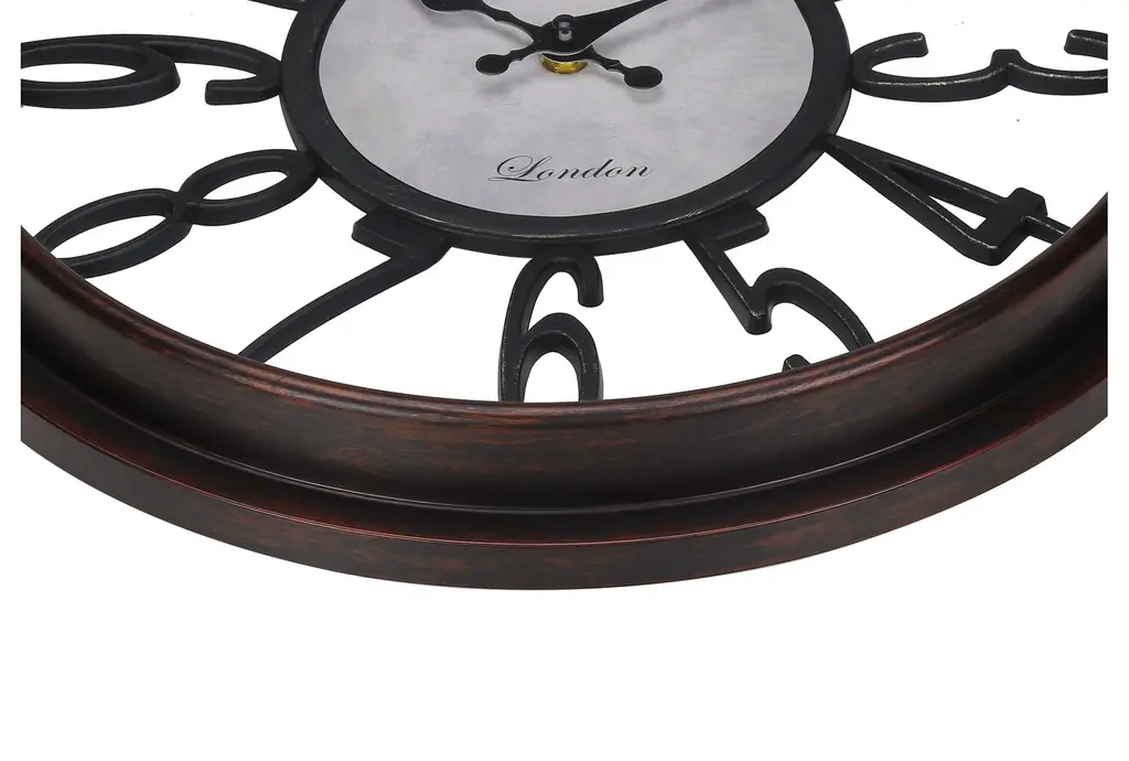 This stylish and fashionable 16" Round Antique Brown Wall Clock is a perfect addition to any traditional decor. Easy to read with roman numeric markings against a skeleton style background, it features quartz movement for accurate timekeeping. Made with quality materials, this clock is both durable and elegant.