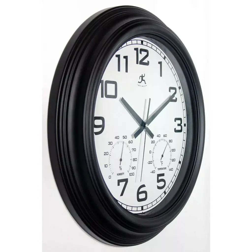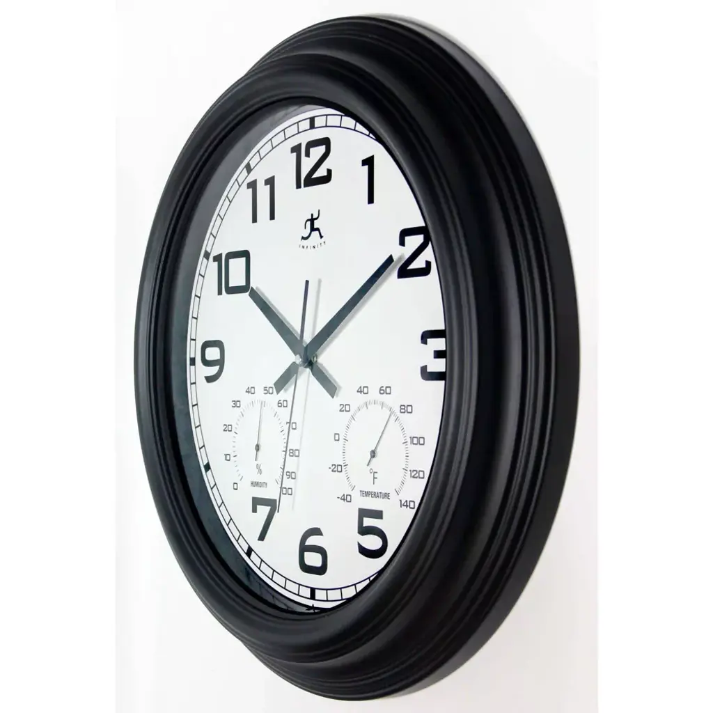 18.5" Classique Indoor/outdoor Wall Clock Black - Infinity Instruments: Weather-resistant With Thermometer & Hygrometer