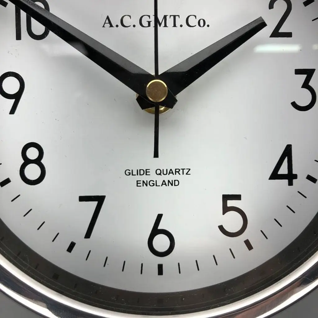 1970s British Bronze And Chrome Ac Gmt Co. Industrial Wall Clock White Dial