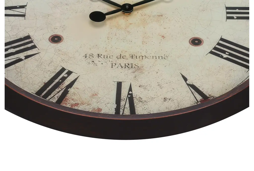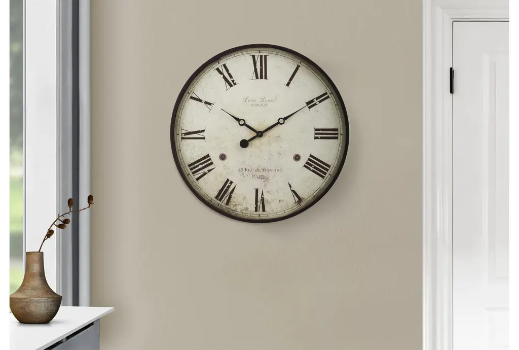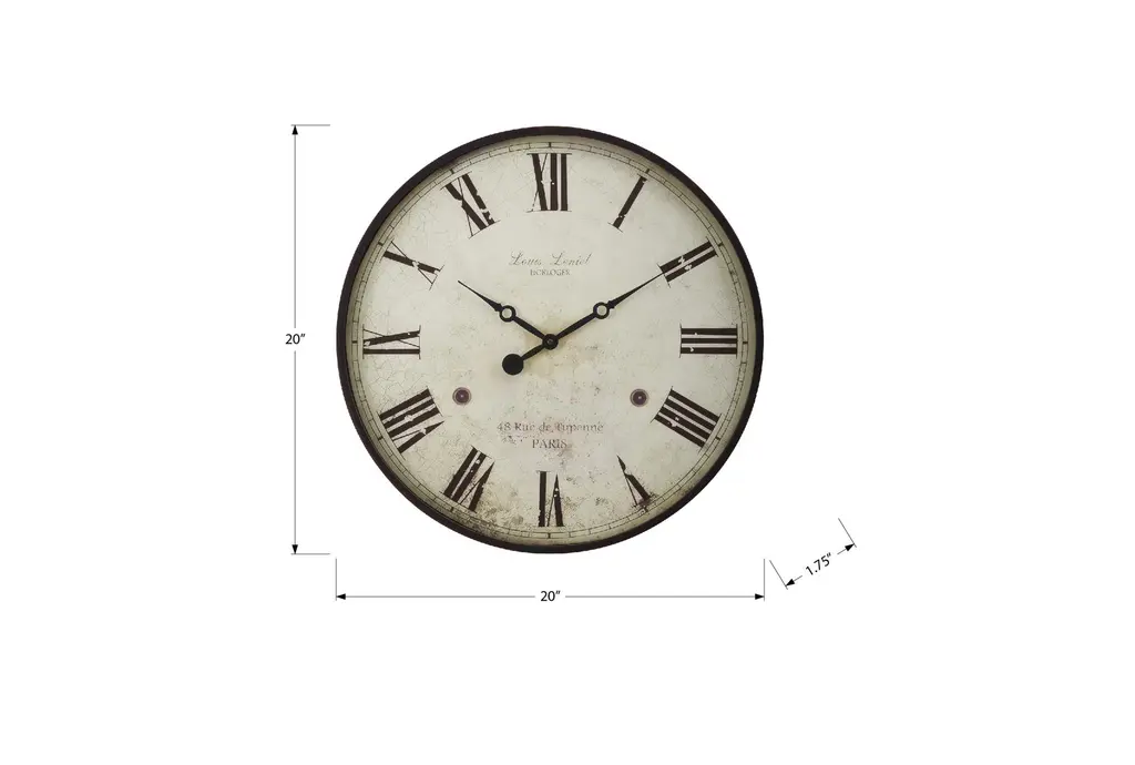 This stylish and fashionable 20" Round Black And Silver Paris Wall Clock is a perfect addition to any traditional home decor. The easy-to-read roman numeric markings and analog display against an old-world backdrop add a touch of elegance to your space. Made with quality materials, this clock ensures long-lasting durability and accurate timekeeping.