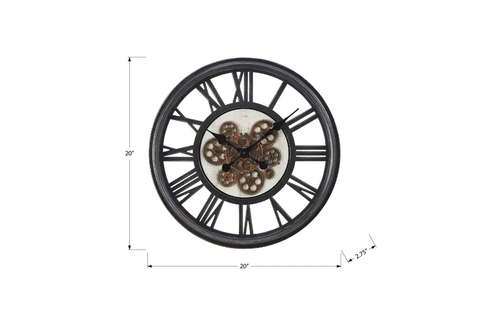 20" Round Black Gear Mechanism Wall Clock
