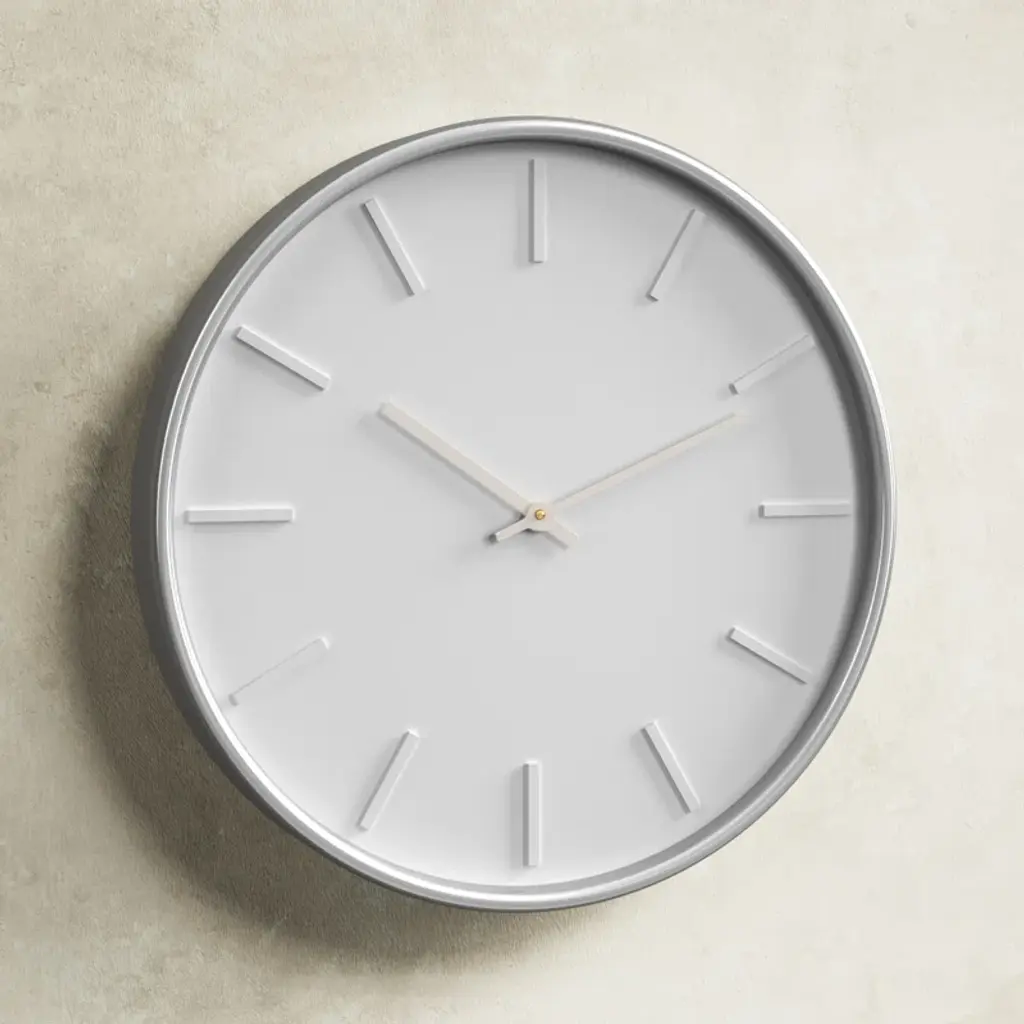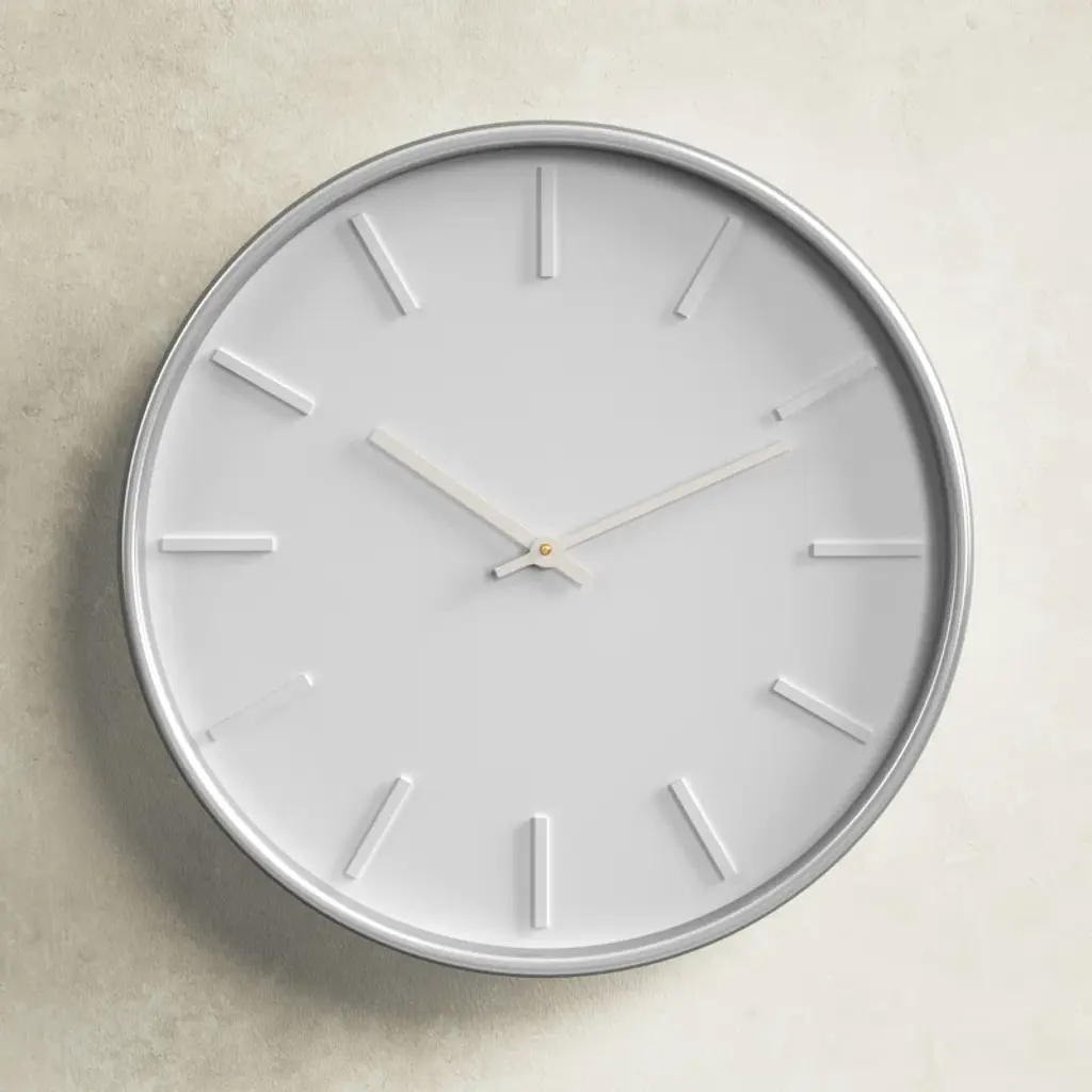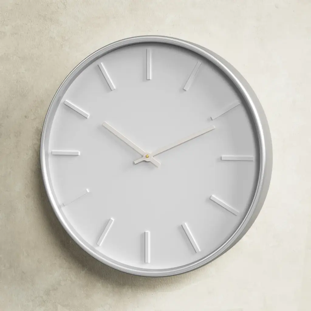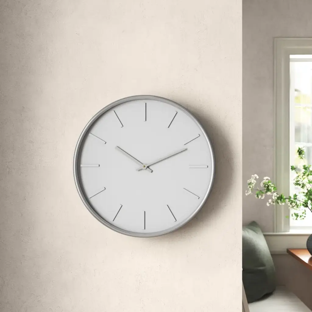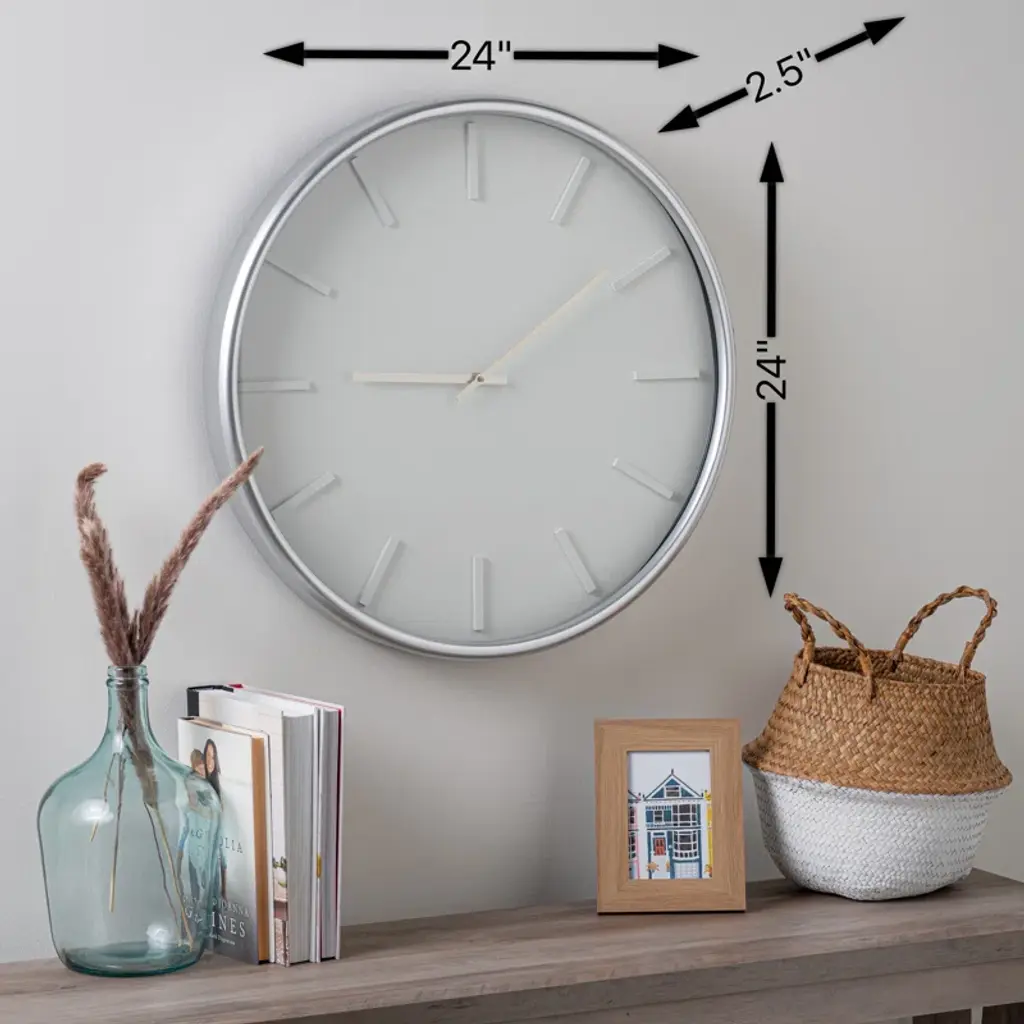 This modern, round, battery-powered wall clock features a silent, continuous-sweep movement. You'll love the natural wood face and exposed metal hands that complement various decor styles. Perfect for a quiet and stylish addition to your home.
