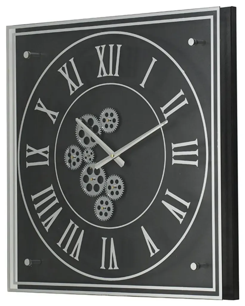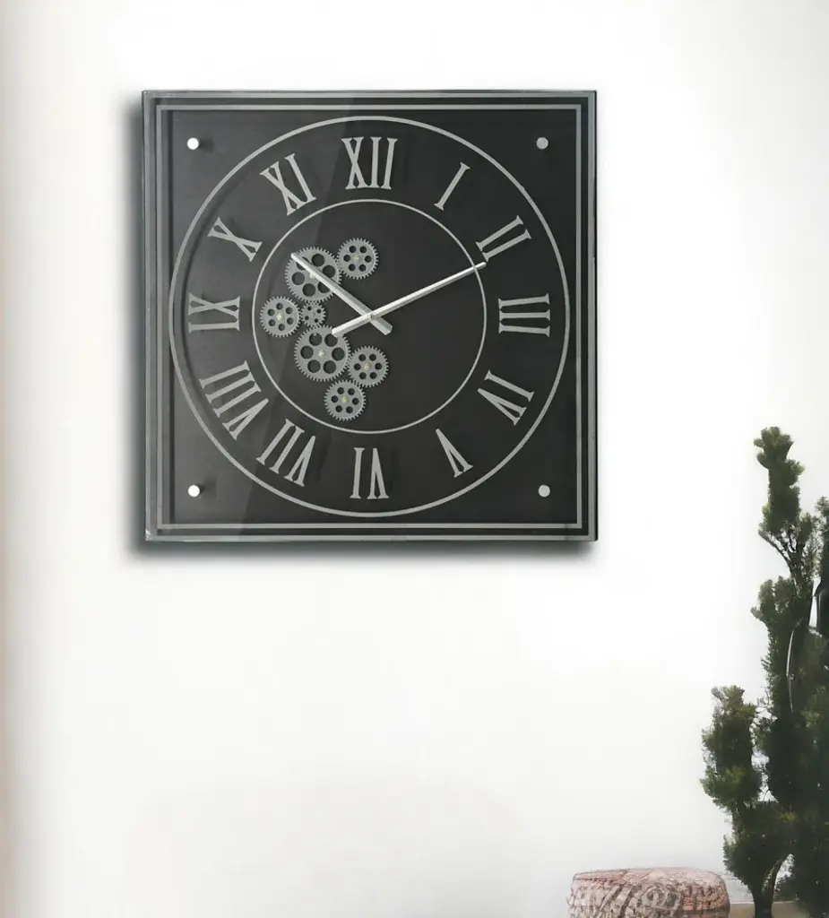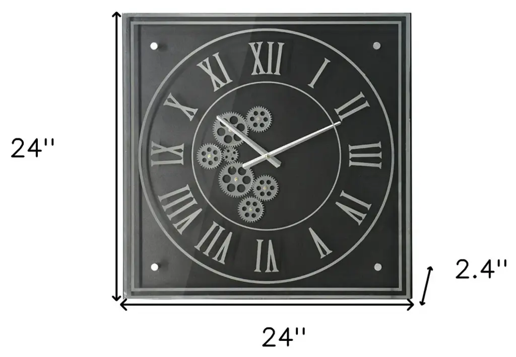 24" Black And Silver Vintage Style Gears Square Wall Clock