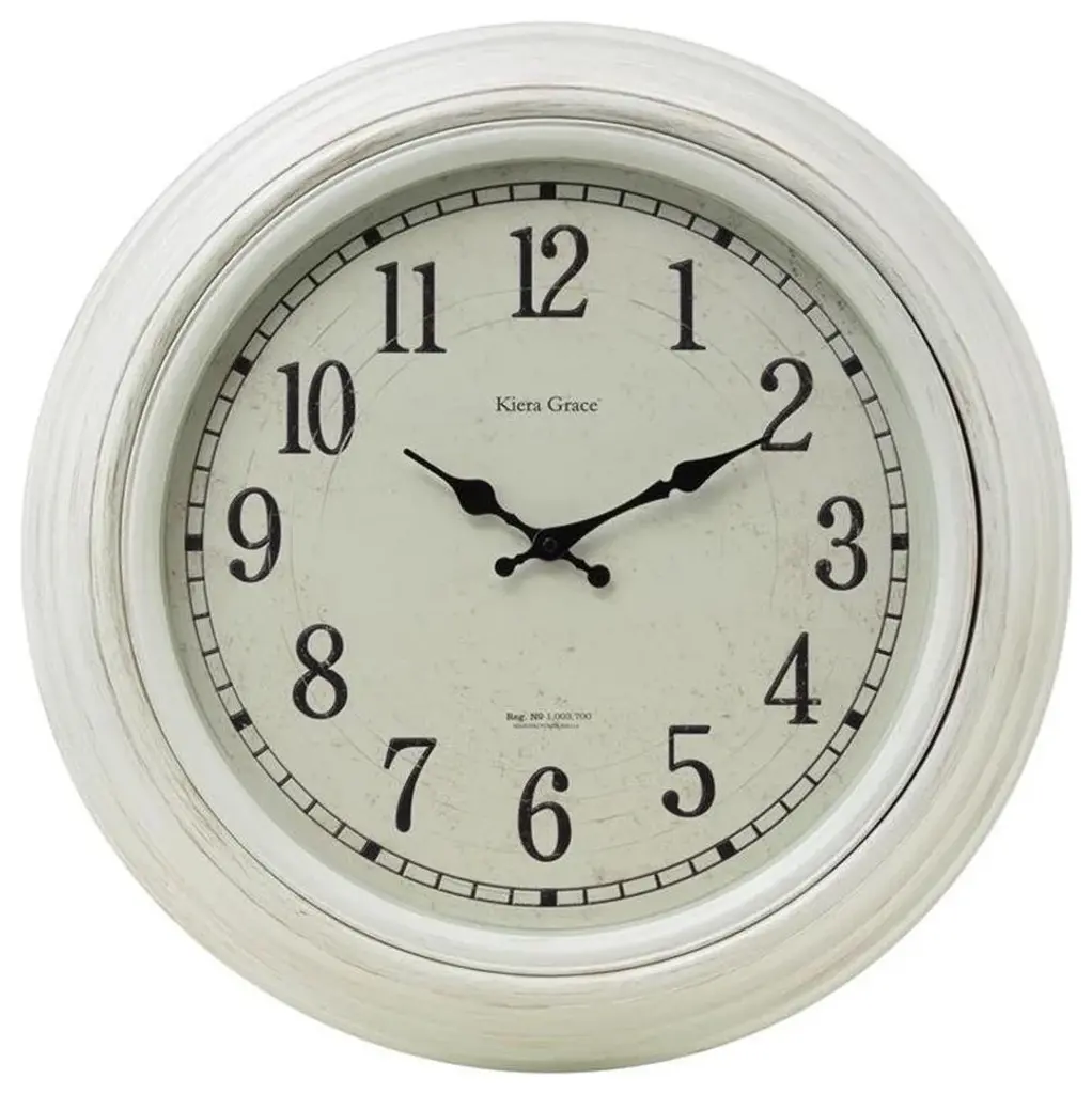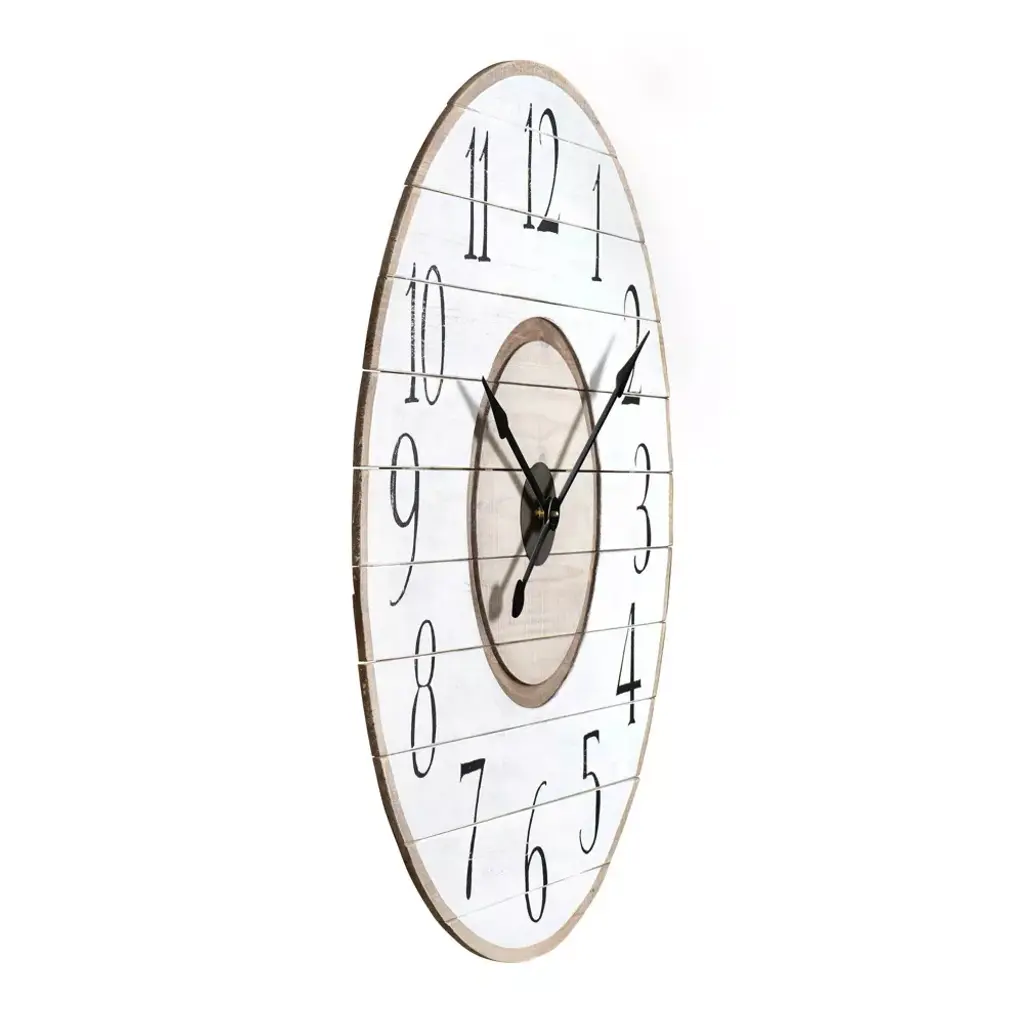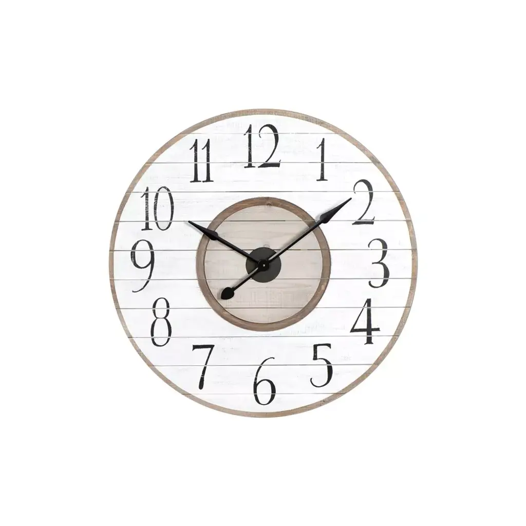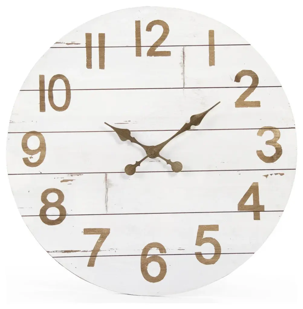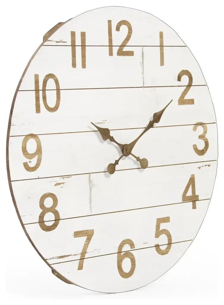 36" Round Distressed Wood Slat Clock White - Storied Home: Modern Analog, Indoor Use