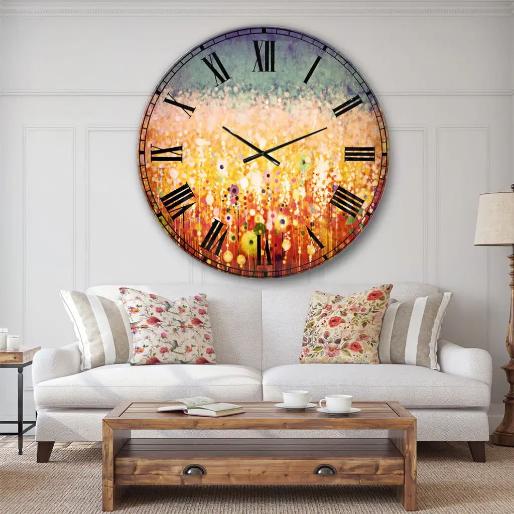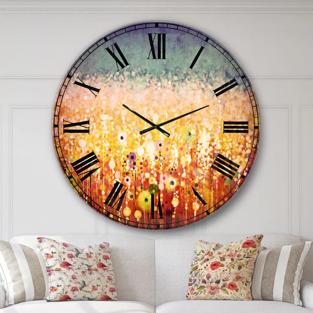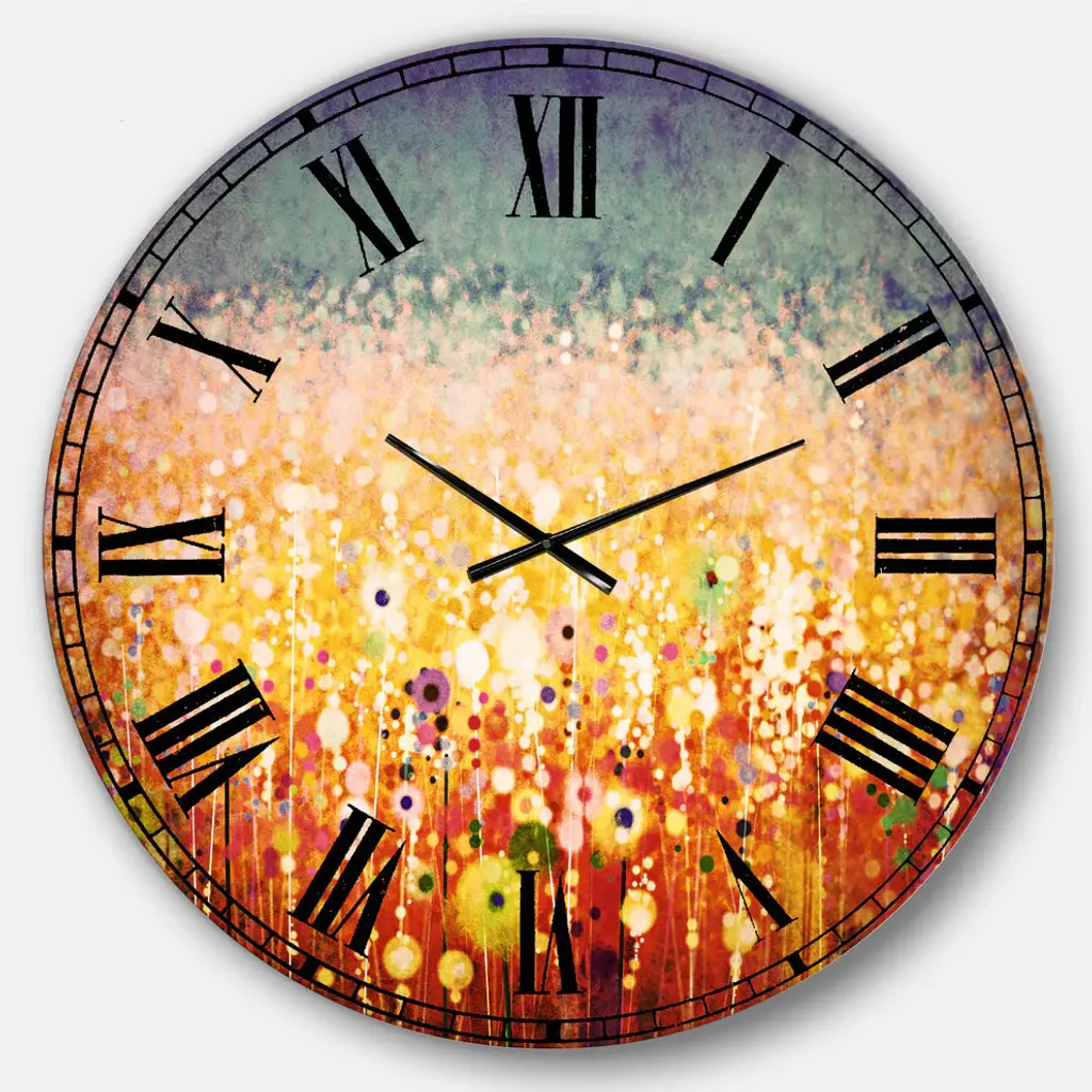 Abstract Flower Field Watercolor Painting Floral Metal Clock, 36x36