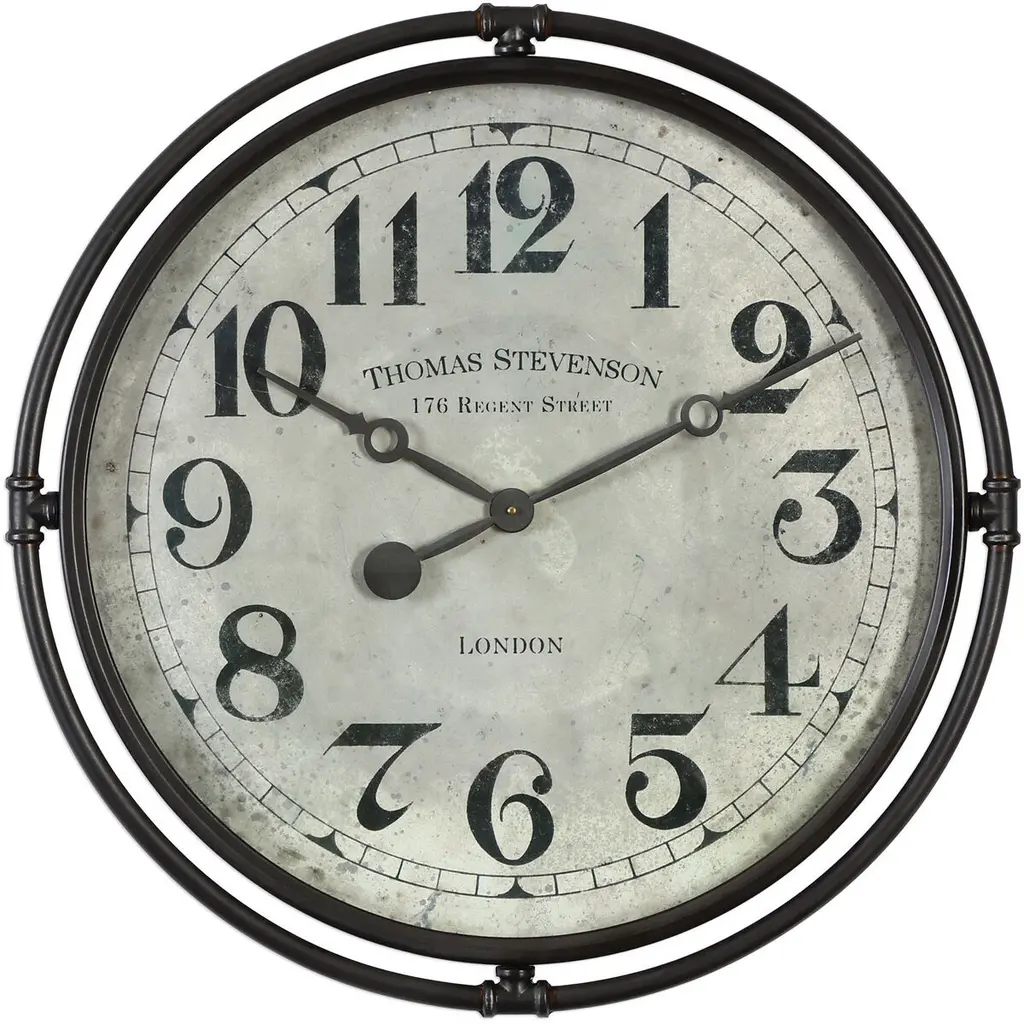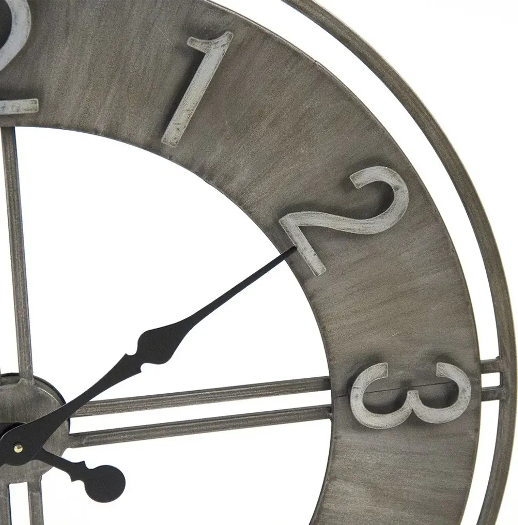 Round metal cutout wall clock in distressed metallic finish. Zentique combines unique designs with high-end materials to bring you the very best home decor in the business. When you order a product engineered and manufactured by Zentique, you''re guaranteed to get a product that is built to last for years and years to come. This product will come in ship-safe packaging materials and will be sure to impress!DimensionsLength: 30 in. Width: 2 in. Height: 30 in. Some assembly required: No