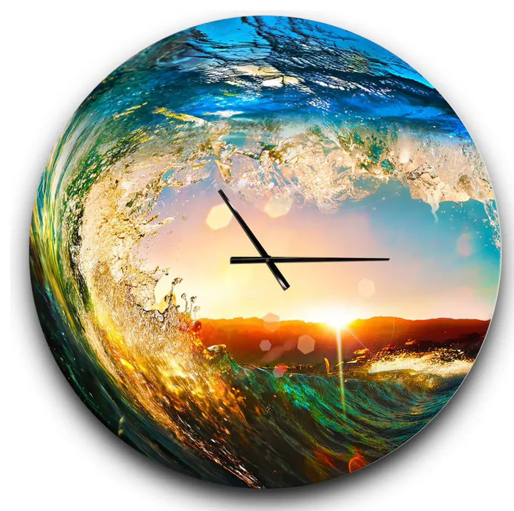 A beautiful addition to any home or office, this Modern and Contemporary round wall clock is made on 100% solid aluminum. It has a highly reflective glossy finish creating a sleek modern look. This Agate with Chalcedony Geological Crystal wall clock arrives completely ready to hang on the wall. Simply insert the �AAA� battery included with your order.Available in several size, this Modern Oversized Clock makes it the focal point of any room.Features - Ultra Gloss Coating ensures colors are extra vibrant with light reflection. - 1mm Aluminum grade sheet metal. - 1-inch mounting frame gives the illusion of artwork floating on the wall. - Mounting brackets and instructions are included. - High quality digital images are created directly into a glossy aluminum panel, producing a stunning and captivating print in the glossy finish of the metal. - Looks better than any photo paper and guaranteed to last at least 20 years. - Easy to clean with a microfiber cloth. - "AAA" battery included with your order. - Easy to hang. - Style: Modern and Contemporary - Material: Metal - Shape: RoundSee Options drop down for available sizes.