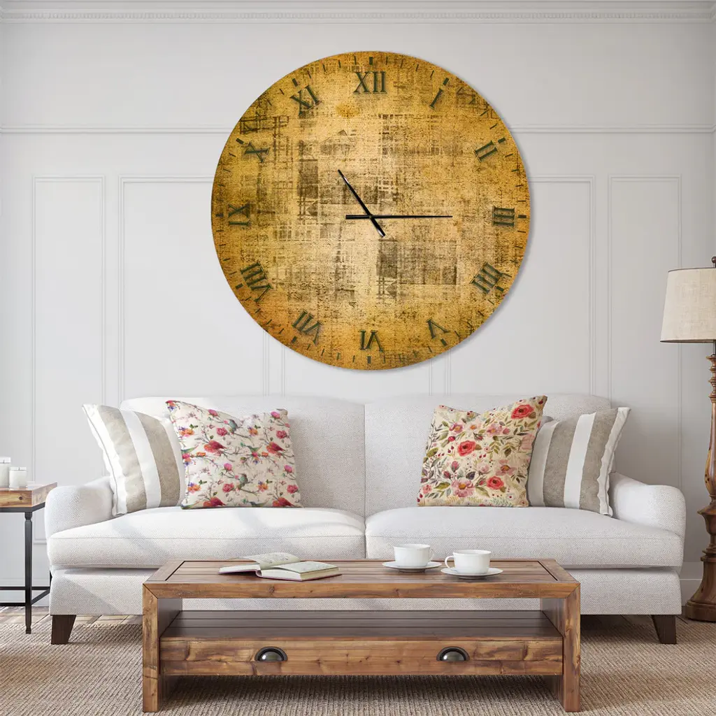 A beautiful addition to any home or office, this Rustic round wall clock is made on 100% solid aluminum. It has a highly reflective glossy finish creating a sleek modern look. This Antique face on Parchment wall clock arrives completely ready to hang on the wall. Simply insert the �AAA� battery included with your order.Available in several size, this Modern Oversized Clock makes it the focal point of any room.Features - Ultra Gloss Coating ensures colors are extra vibrant with light reflection. - 1mm Aluminum grade sheet metal. - 1-inch mounting frame gives the illusion of artwork floating on the wall. - Mounting brackets and instructions are included. - High quality digital images are created directly into a glossy aluminum panel, producing a stunning and captivating print in the glossy finish of the metal. - Looks better than any photo paper and guaranteed to last at least 20 years. - Easy to clean with a microfiber cloth. - "AAA" battery included with your order. - Easy to hang. - Style: Rustic - Material: Metal - Shape: RoundSee Options drop down for available sizes.