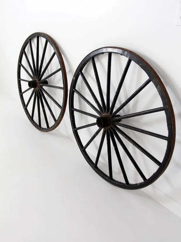 Antique Wagon Wheel On Turquoise Wood Farmhouse Clock, 23x23