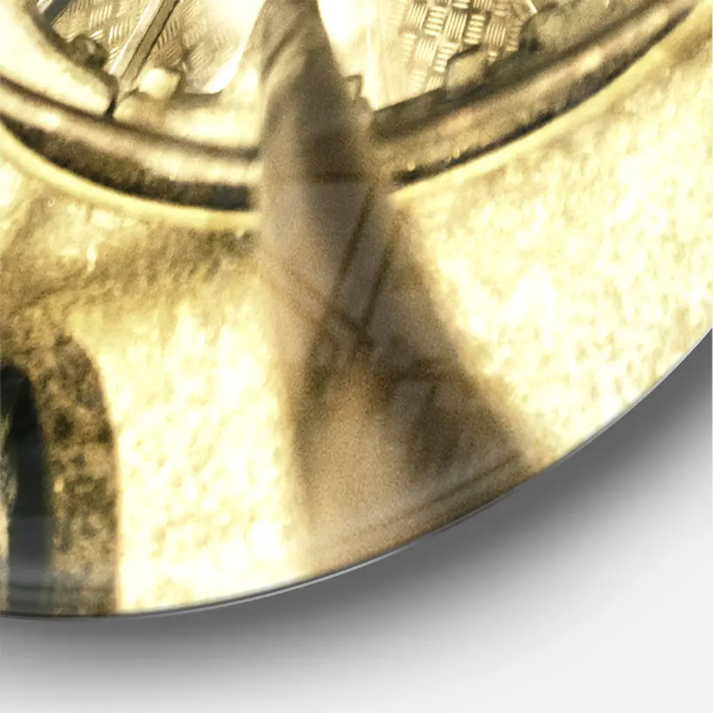 A beautiful addition to any home or office, this Industrial round wall clock is made on 100% solid aluminum. It has a highly reflective glossy finish creating a sleek modern look. This Architectural Detail of Paris in Winter wall clock arrives completely ready to hang on the wall. Simply insert the �AAA� battery included with your order.Available in several size, this Modern Oversized Clock makes it the focal point of any room.Features - Ultra Gloss Coating ensures colors are extra vibrant with light reflection. - 1mm Aluminum grade sheet metal. - 1-inch mounting frame gives the illusion of artwork floating on the wall. - Mounting brackets and instructions are included. - High quality digital images are created directly into a glossy aluminum panel, producing a stunning and captivating print in the glossy finish of the metal. - Looks better than any photo paper and guaranteed to last at least 20 years. - Easy to clean with a microfiber cloth. - "AAA" battery included with your order. - Easy to hang. - Style: Industrial - Material: Metal - Shape: RoundSee Options drop down for available sizes.