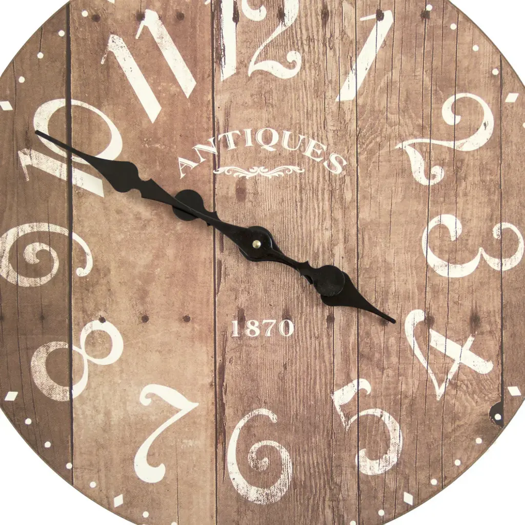 Wooden serving board shaped wall clock in weathered finish. Zentique combines unique designs with high-end materials to bring you the very best home decor in the business. When you order a product engineered and manufactured by Zentique, you''re guaranteed to get a product that is built to last for years and years to come. This product will come in ship-safe packaging materials and will be sure to impress!DimensionsLength: 18 in. Width: 0. 5 in. Height: 23. 5 in. Some assembly required: No