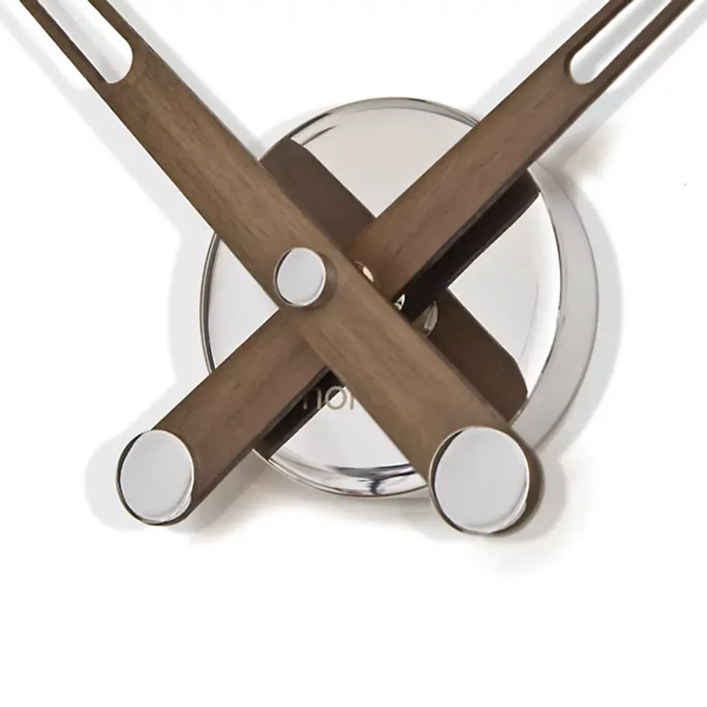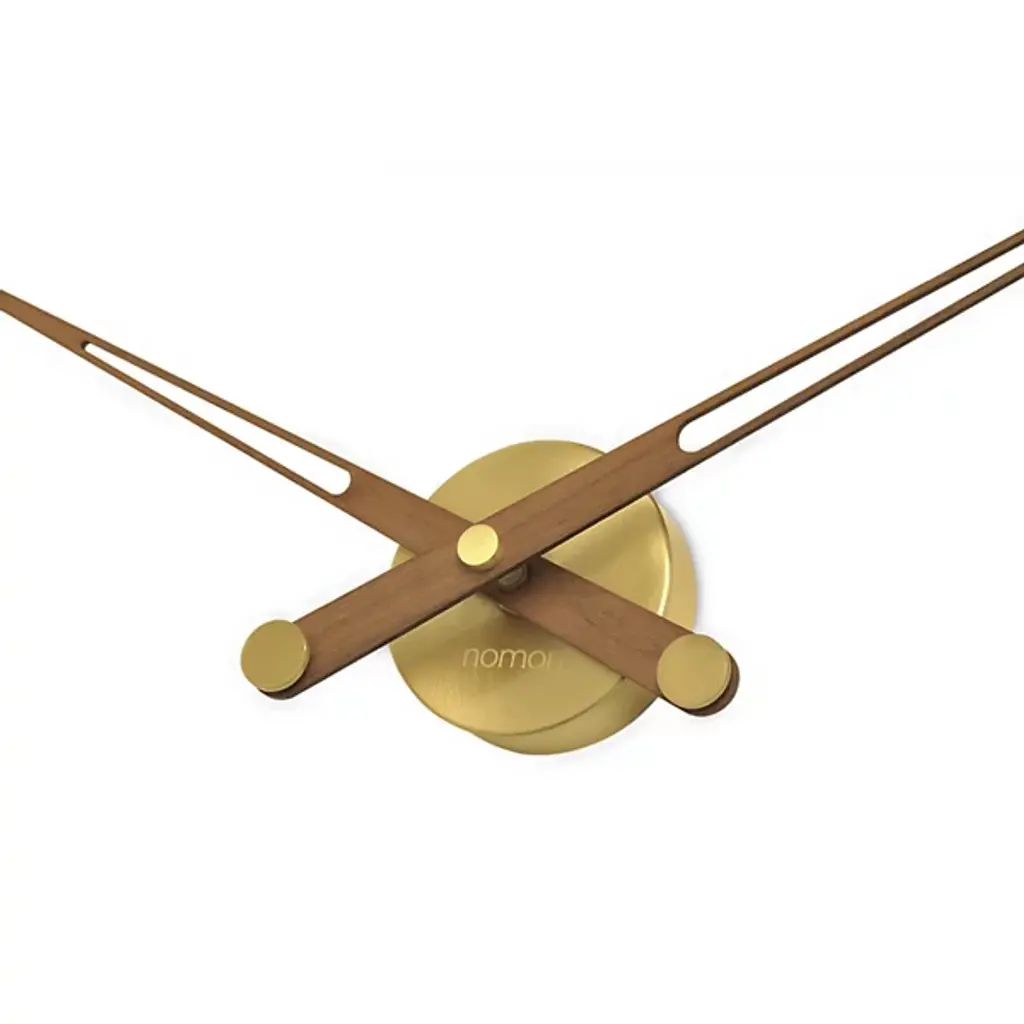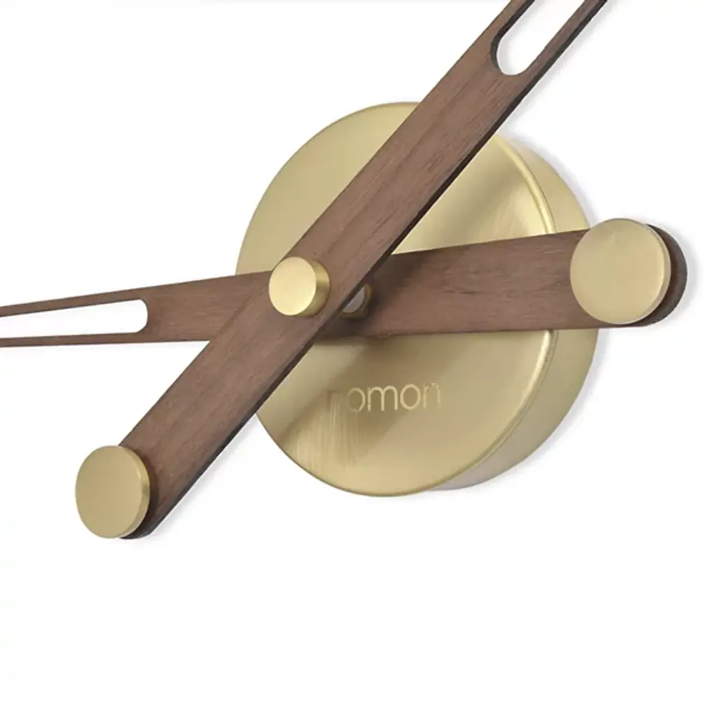 Decorate your wall space with the Axioma Wall Clock from Nomon. A simple yet functional design that can easily enhance an area and add a minimal feel. Features a beautiful chrome or polished brass center piece box with the choice of wooden or steel elongated hands.