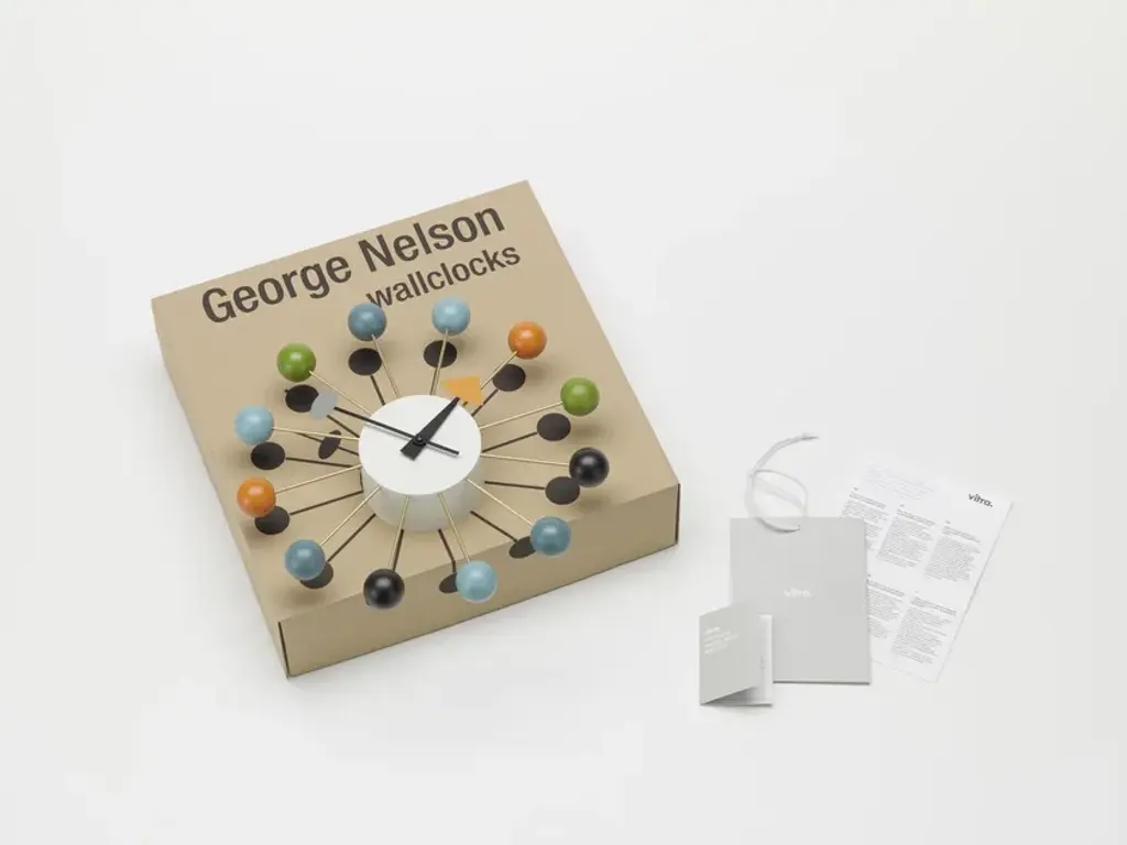 In 1947, the American designer George Nelson was commissioned to create a collection of clocks. Nelson analysed how people used clocks and concluded that they read the time by discerning the relative position of the hands, which made the use of numbers unnecessary. Furthermore, since most people wore wristwatches, he assumed that clocks had become more of a decorative element for interiors.These ideas provided the basis for the first collection of 14 timepieces, consisting of a completely new style of wall clocks and compact table clocks, which were launched on the market in 1949. Although the models all shared one common feature – the absence of numbers – the diversity of their shapes, colours, materials and designs could hardly have been greater.In the 35 years that followed, the designers at Nelson Associates conceived more than a hundred different clock models: wall clocks, portable table clocks and built-in clocks. After Nelson’s death in 1986, his archival estate, encompassing roughly 7400 manuscripts, plans, drawings, photographs and slides dating from 1924 to 1984, was acquired by the Vitra Design Museum.Vitra began reissuing the Nelson Clocks in 1999 and continues to expand the collection with new pieces from time to time. The Wall Clocks come in diverse shapes and materials. Equipped with high-quality quartz movements, they offer a refreshing alternative to conventional clocks – including a wide selection of different designs to suit almost every taste and fancy.Materials:- Materials: various types of wood and metal.- Product contents: high-quality quartz clock movement, 1.5 volt battery included.