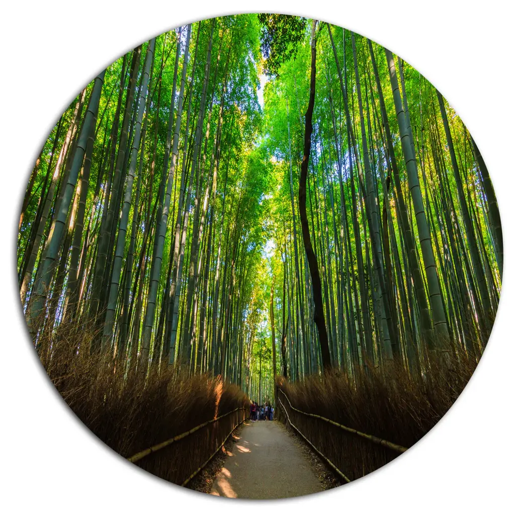 A beautiful addition to any home or office, this Rustic round wall clock is made on 100% solid aluminum. It has a highly reflective glossy finish creating a sleek modern look. This Bamboo forest of Kyoto Japan. wall clock arrives completely ready to hang on the wall. Simply insert the �AAA� battery included with your order.Available in several size, this Modern Oversized Clock makes it the focal point of any room.Features - Ultra Gloss Coating ensures colors are extra vibrant with light reflection. - 1mm Aluminum grade sheet metal. - 1-inch mounting frame gives the illusion of artwork floating on the wall. - Mounting brackets and instructions are included. - High quality digital images are created directly into a glossy aluminum panel, producing a stunning and captivating print in the glossy finish of the metal. - Looks better than any photo paper and guaranteed to last at least 20 years. - Easy to clean with a microfiber cloth. - "AAA" battery included with your order. - Easy to hang. - Style: Rustic - Material: Metal - Shape: RoundSee Options drop down for available sizes.