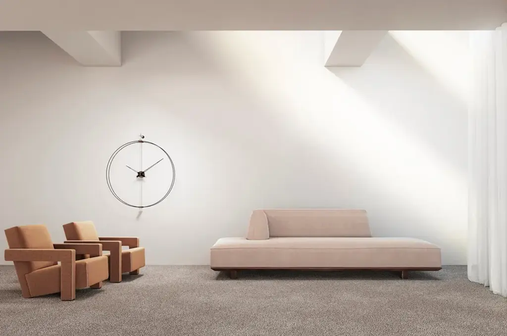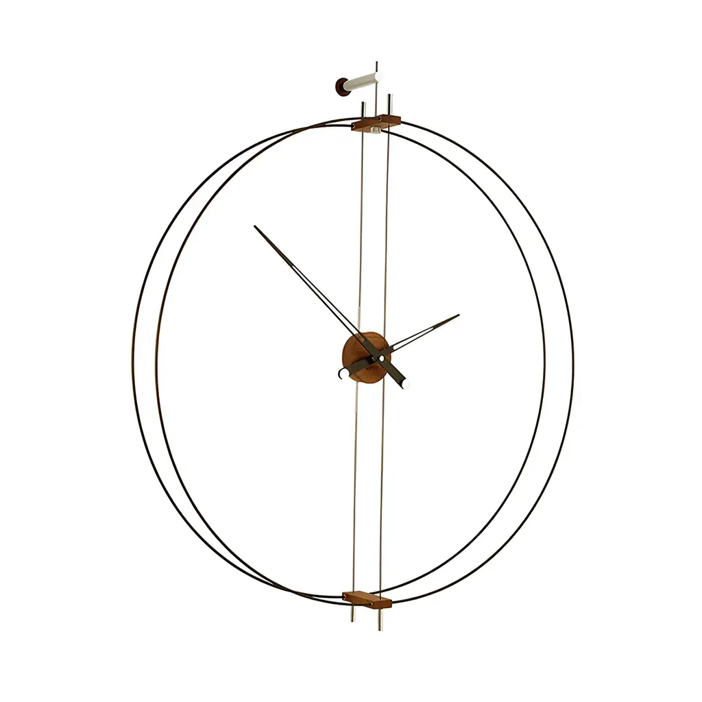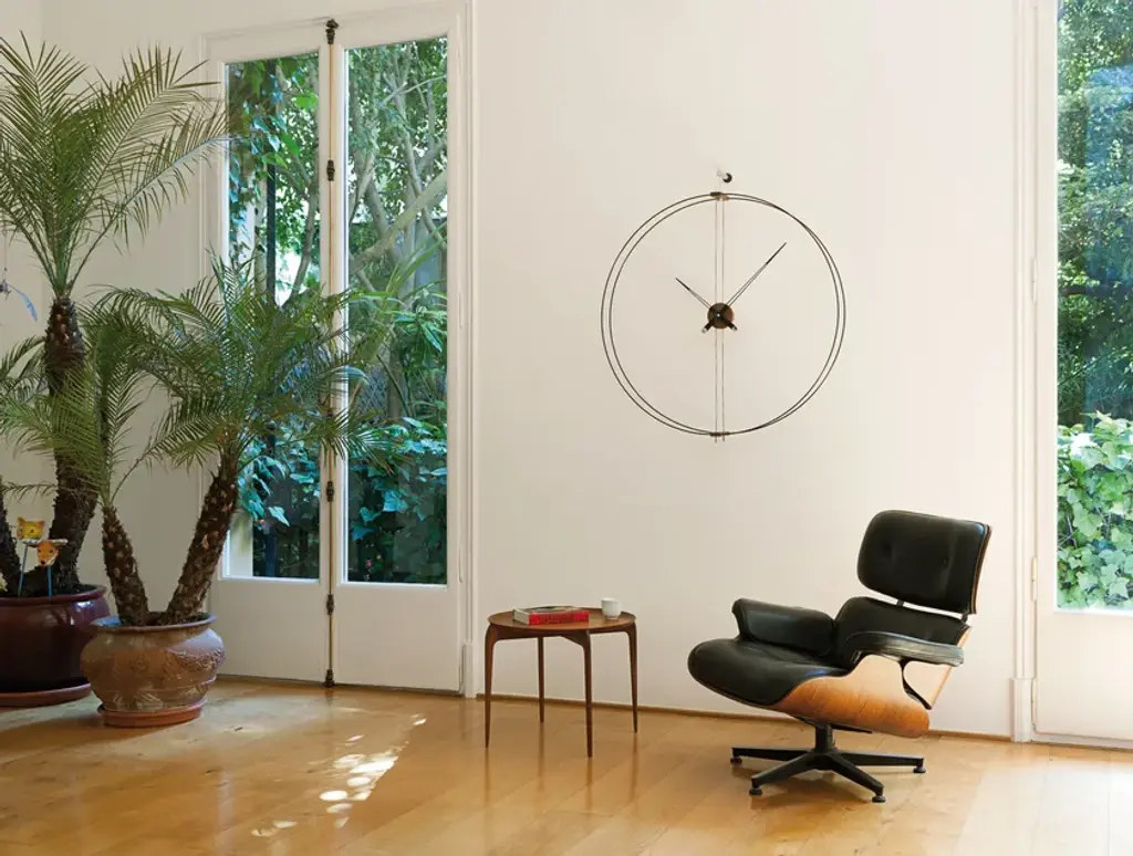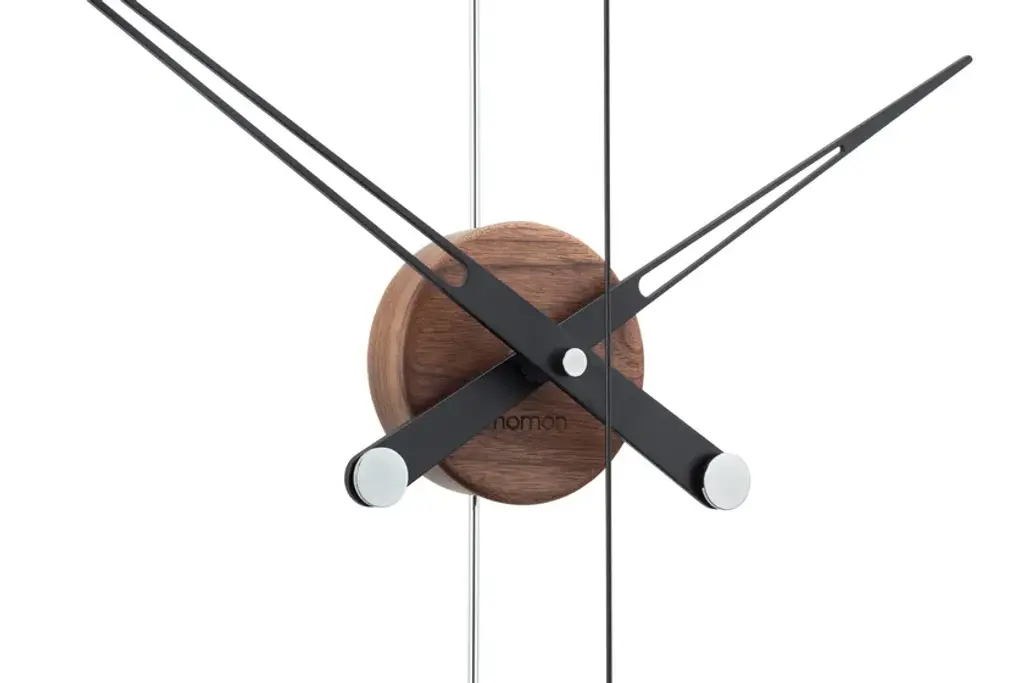 BARCELONA is the Nomon’s most iconic and representative clock, its best-seller par excellence. A wall clock with a double black, ultra-thin fiberglass rim that combines two pieces of walnut, upper and lower, with different metallic finishes for the hands and central box. This successful model, so recognizable, perfectly symbolizes the essence of the brand. Materials: Black fiberglass, black lacquered walnut hands.