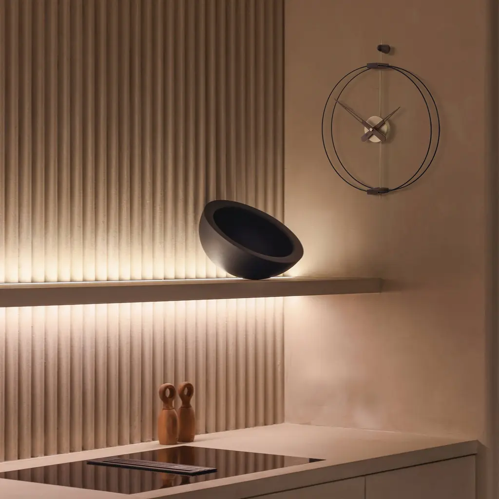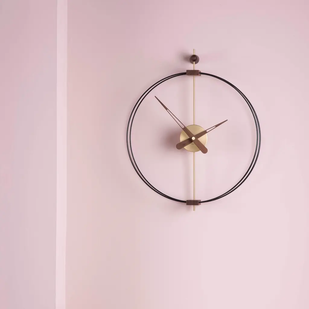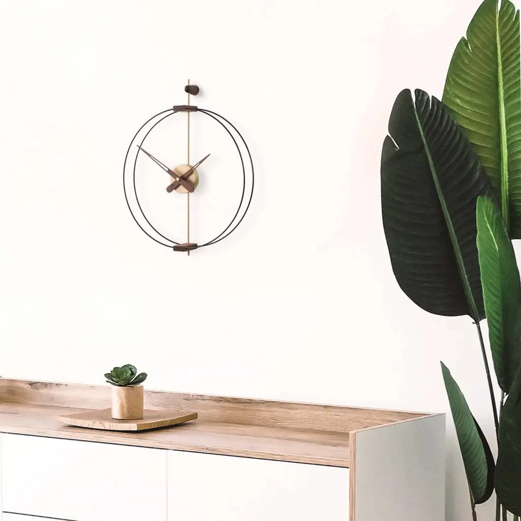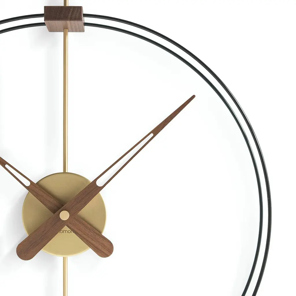Nomon likens its elegantly simple wall clocks to statement-like jewelry for a room and, with 3 sizes to choose from, Barcelona offers varied levels of adornment. With hands in natural or black-lacquered walnut, the timepiece is encircled by its black frame with the center section in a choice of walnut or brass finishes. A unique handmade piece with attention paid to every detail and fully manufactured in Spain, it's powered by German-origin precision quartz works.