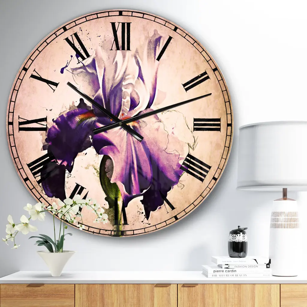 A beautiful addition to any home or office, this Traditional round wall clock is made on 100% solid aluminum. It has a highly reflective glossy finish creating a sleek modern look. This Beautiful Blue Iris Watercolor Sketch wall clock arrives completely ready to hang on the wall. Simply insert the �AAA� battery included with your order.Available in several size, this Modern Oversized Clock makes it the focal point of any room.Features - Ultra Gloss Coating ensures colors are extra vibrant with light reflection. - 1mm Aluminum grade sheet metal. - 1-inch mounting frame gives the illusion of artwork floating on the wall. - Mounting brackets and instructions are included. - High quality digital images are created directly into a glossy aluminum panel, producing a stunning and captivating print in the glossy finish of the metal. - Looks better than any photo paper and guaranteed to last at least 20 years. - Easy to clean with a microfiber cloth. - "AAA" battery included with your order. - Easy to hang. - Style: Traditional - Material: Metal - Shape: RoundSee Options drop down for available sizes.
