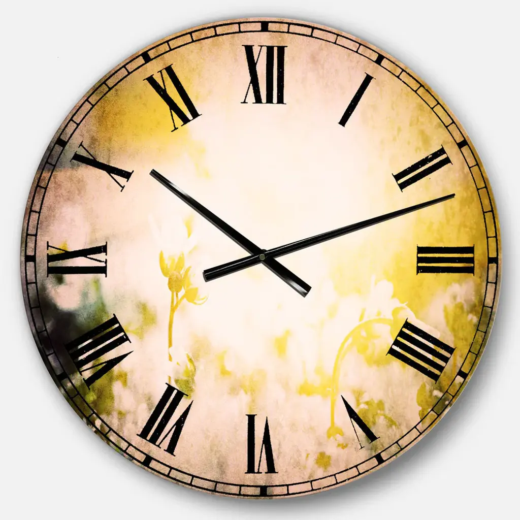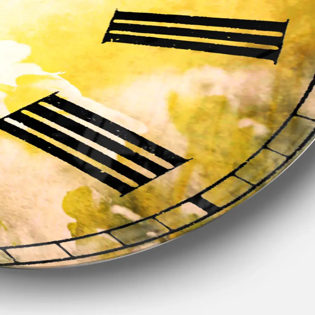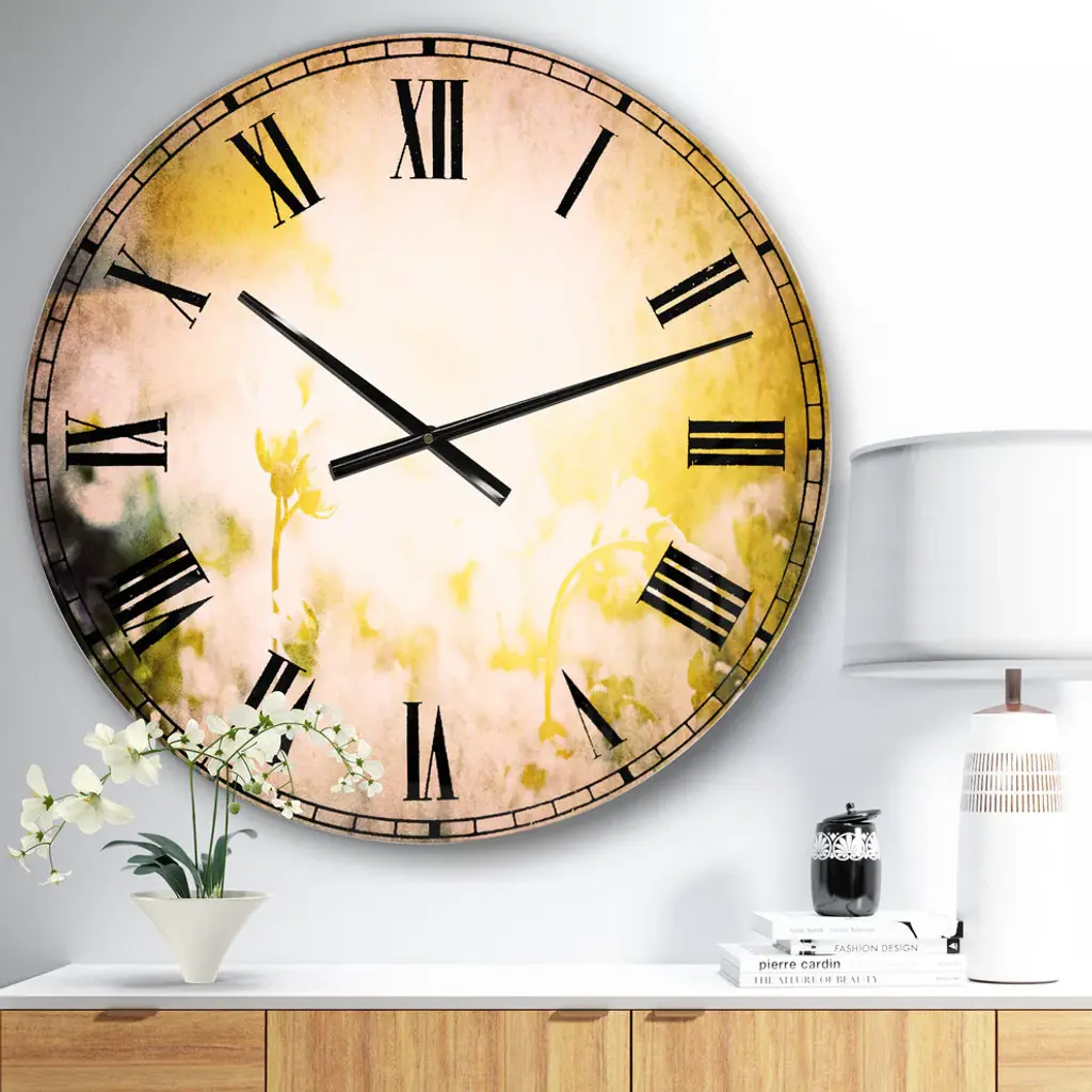 A beautiful addition to any home or office, this Traditional round wall clock is made on 100% solid aluminum. It has a highly reflective glossy finish creating a sleek modern look. This Beautiful White Flowers At Sunrise wall clock arrives completely ready to hang on the wall. Simply insert the �AAA� battery included with your order.Available in several size, this Modern Oversized Clock makes it the focal point of any room.Features - Ultra Gloss Coating ensures colors are extra vibrant with light reflection. - 1mm Aluminum grade sheet metal. - 1-inch mounting frame gives the illusion of artwork floating on the wall. - Mounting brackets and instructions are included. - High quality digital images are created directly into a glossy aluminum panel, producing a stunning and captivating print in the glossy finish of the metal. - Looks better than any photo paper and guaranteed to last at least 20 years. - Easy to clean with a microfiber cloth. - "AAA" battery included with your order. - Easy to hang. - Style: Traditional - Material: Metal - Shape: RoundSee Options drop down for available sizes.