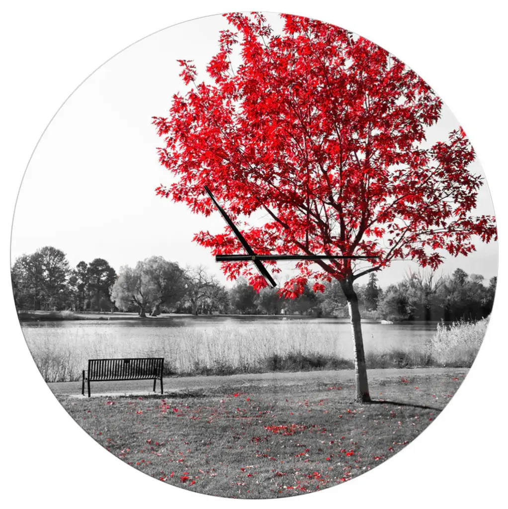 A beautiful addition to any home or office, this Modern & Contemporary round wall clock is made on 100% solid aluminum. It has a highly reflective glossy finish creating a sleek modern look. This Big Red Tree on Foggy Day wall clock arrives completely ready to hang on the wall. Simply insert the �AAA� battery included with your order.Available in several size, this Modern Oversized Clock makes it the focal point of any room.Features - Ultra Gloss Coating ensures colors are extra vibrant with light reflection. - 1mm Aluminum grade sheet metal. - 1-inch mounting frame gives the illusion of artwork floating on the wall. - Mounting brackets and instructions are included. - High quality digital images are created directly into a glossy aluminum panel, producing a stunning and captivating print in the glossy finish of the metal. - Looks better than any photo paper and guaranteed to last at least 20 years. - Easy to clean with a microfiber cloth. - "AAA" battery included with your order. - Easy to hang. - Style: Modern & Contemporary - Material: Metal - Shape: RoundSee Options drop down for available sizes.