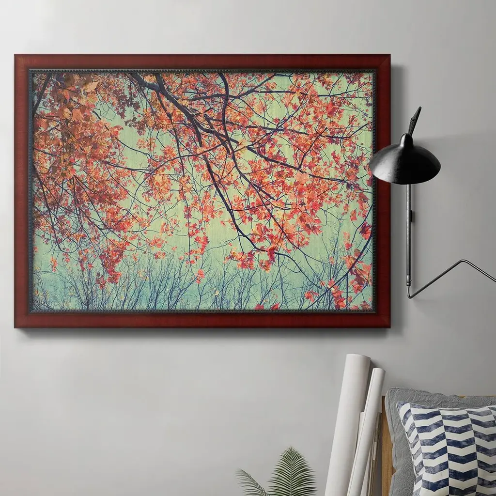 Big Red Tree On Foggy Day Oversized Floral Metal Clock, 23x23