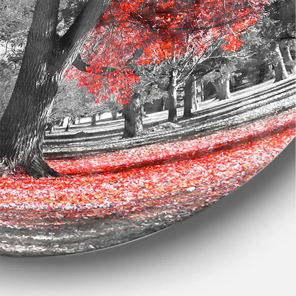 A beautiful addition to any home or office, this Modern & Contemporary round wall clock is made on 100% solid aluminum. It has a highly reflective glossy finish creating a sleek modern look. This Big Red Tree on Foggy Day wall clock arrives completely ready to hang on the wall. Simply insert the �AAA� battery included with your order.Available in several size, this Modern Oversized Clock makes it the focal point of any room.Features - Ultra Gloss Coating ensures colors are extra vibrant with light reflection. - 1mm Aluminum grade sheet metal. - 1-inch mounting frame gives the illusion of artwork floating on the wall. - Mounting brackets and instructions are included. - High quality digital images are created directly into a glossy aluminum panel, producing a stunning and captivating print in the glossy finish of the metal. - Looks better than any photo paper and guaranteed to last at least 20 years. - Easy to clean with a microfiber cloth. - "AAA" battery included with your order. - Easy to hang. - Style: Modern & Contemporary - Material: Metal - Shape: RoundSee Options drop down for available sizes.
