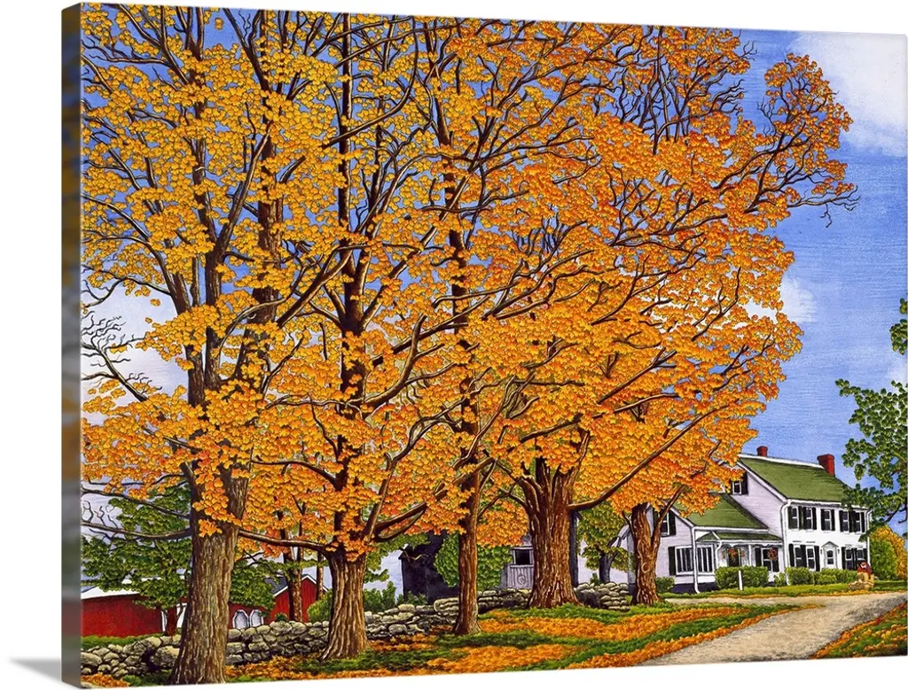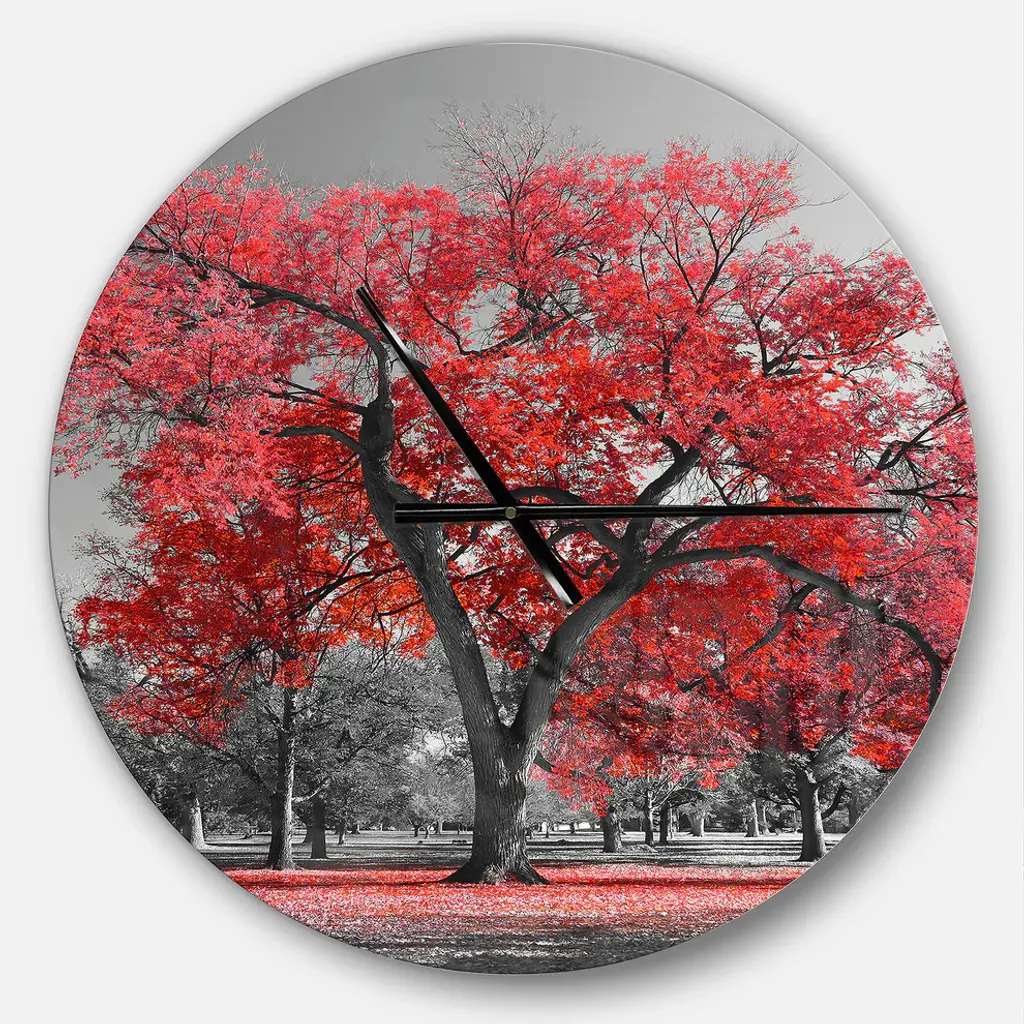 Big Red Tree On Foggy Day Oversized Floral Metal Clock, 23x23