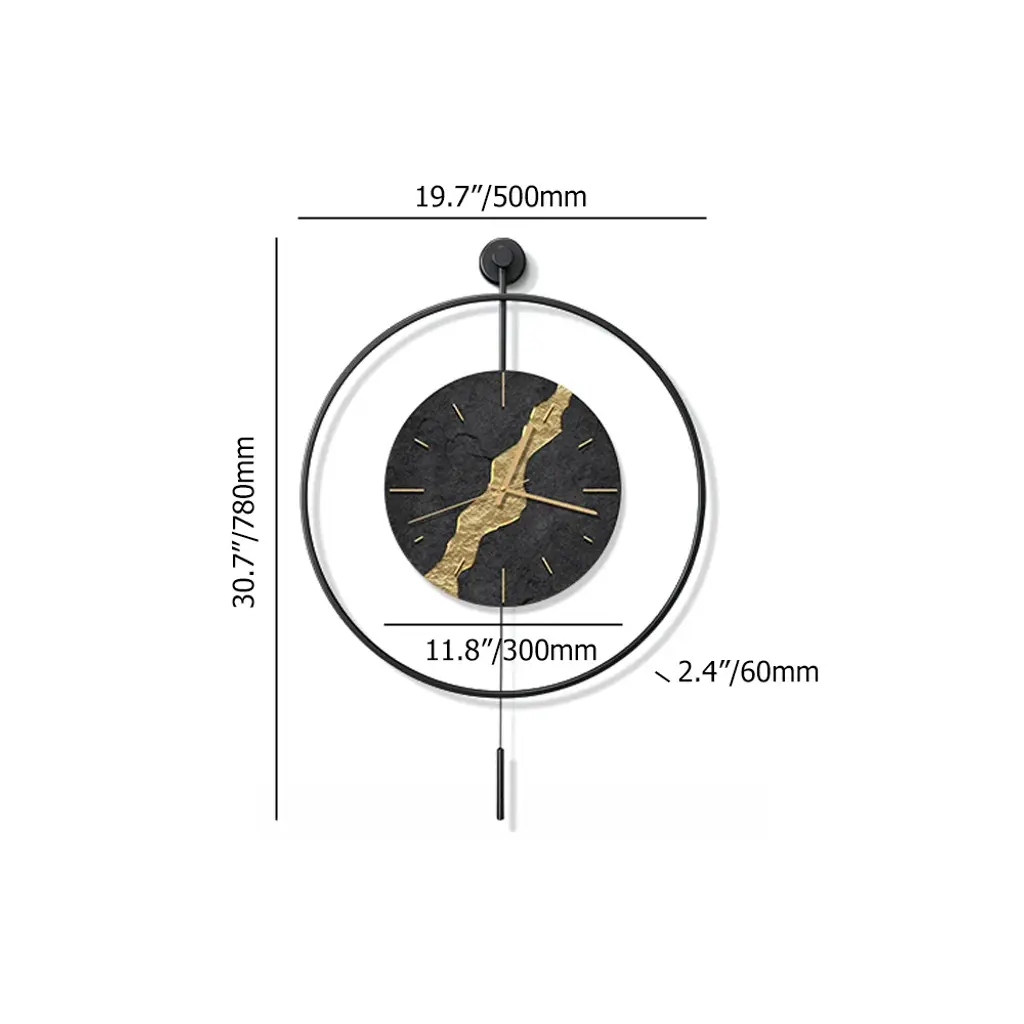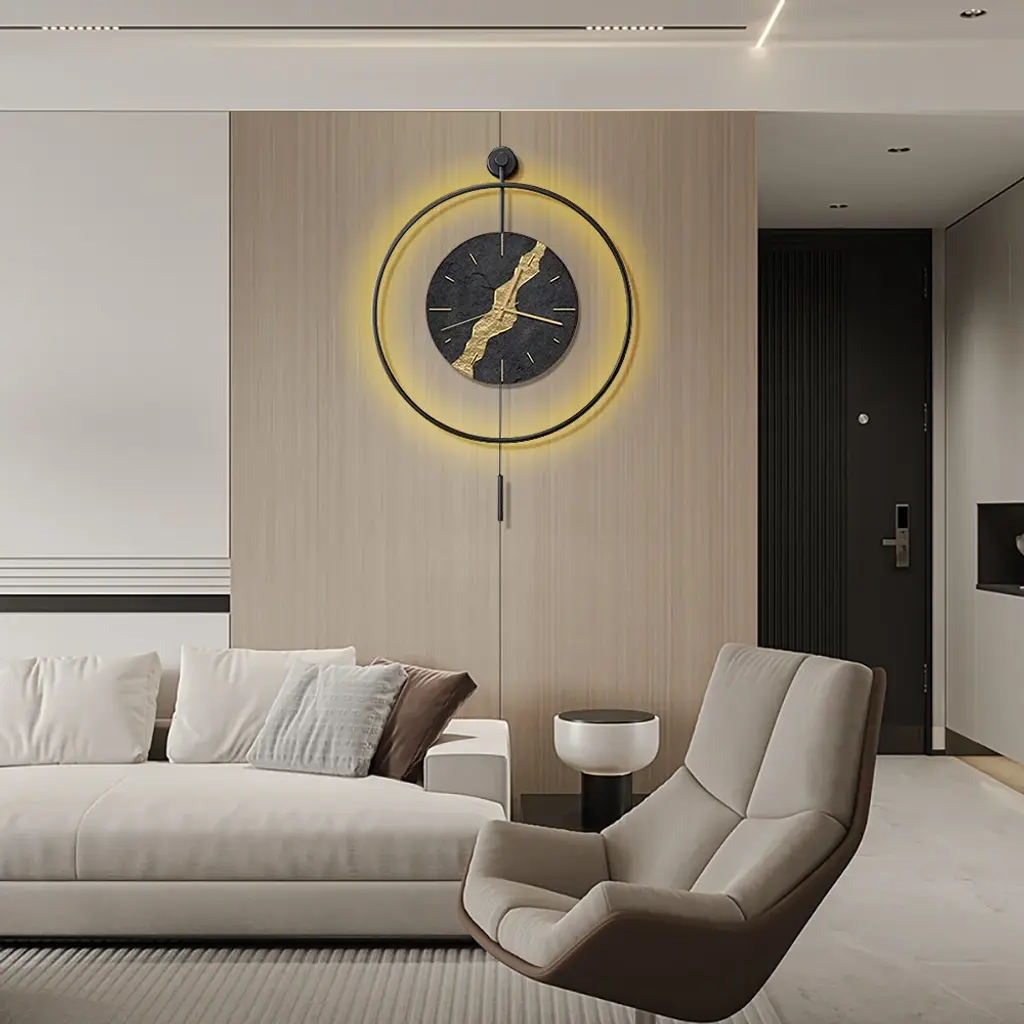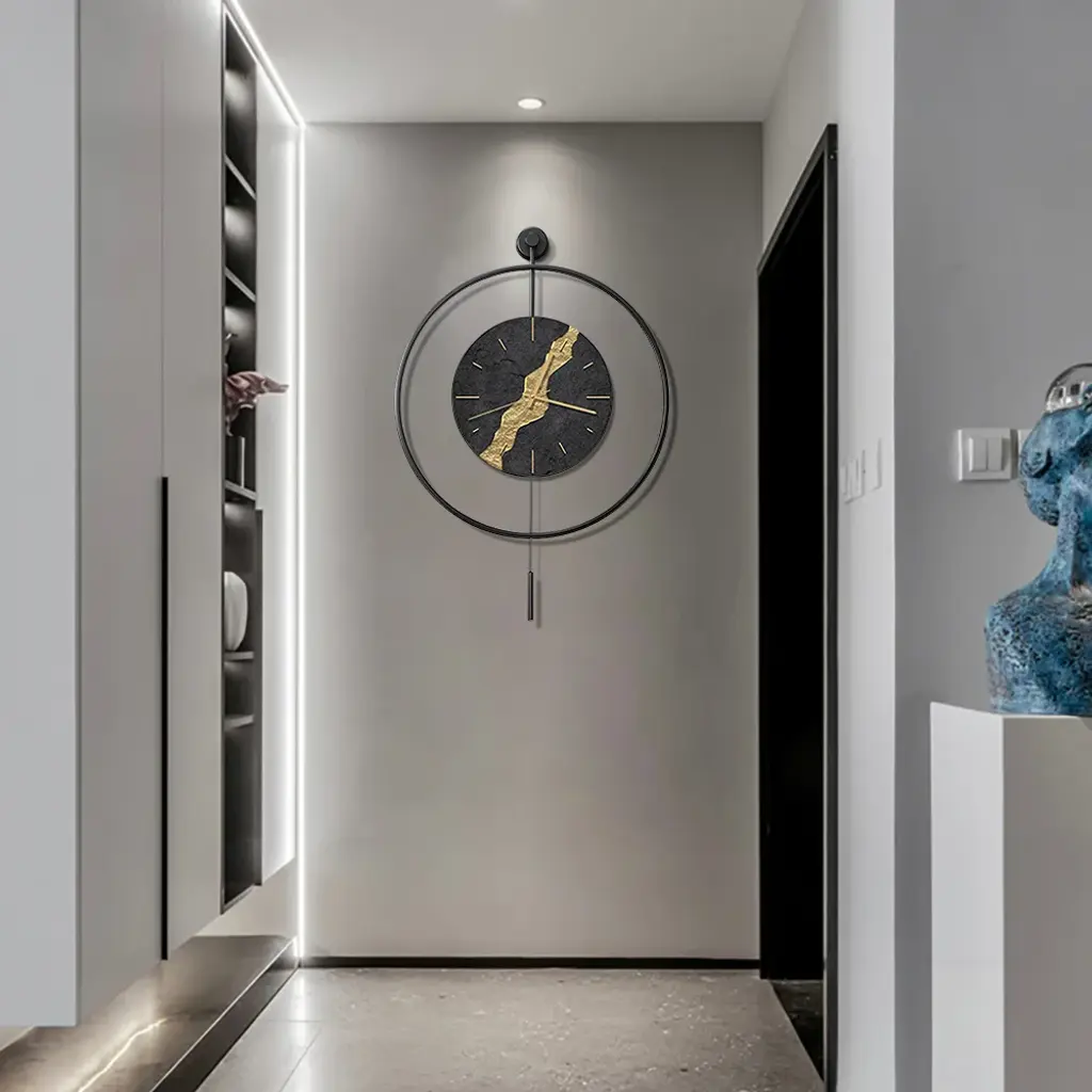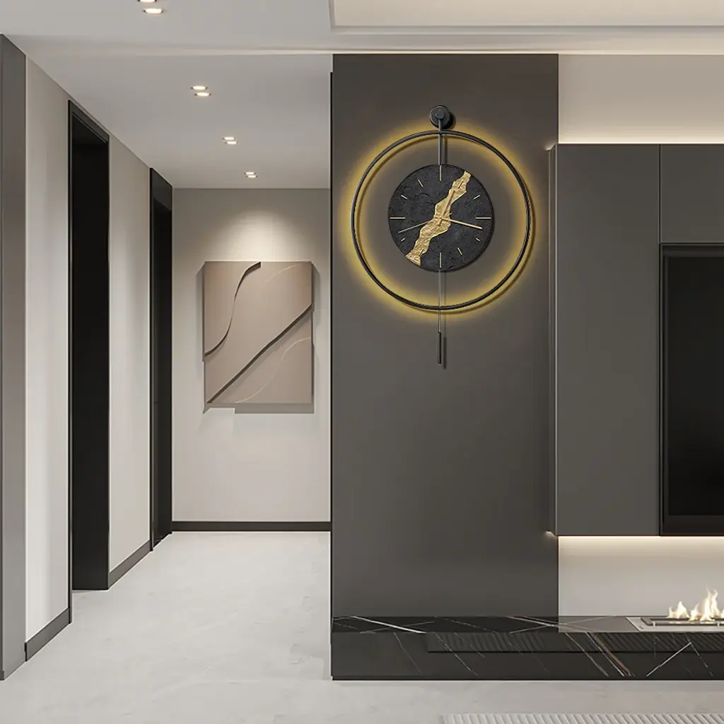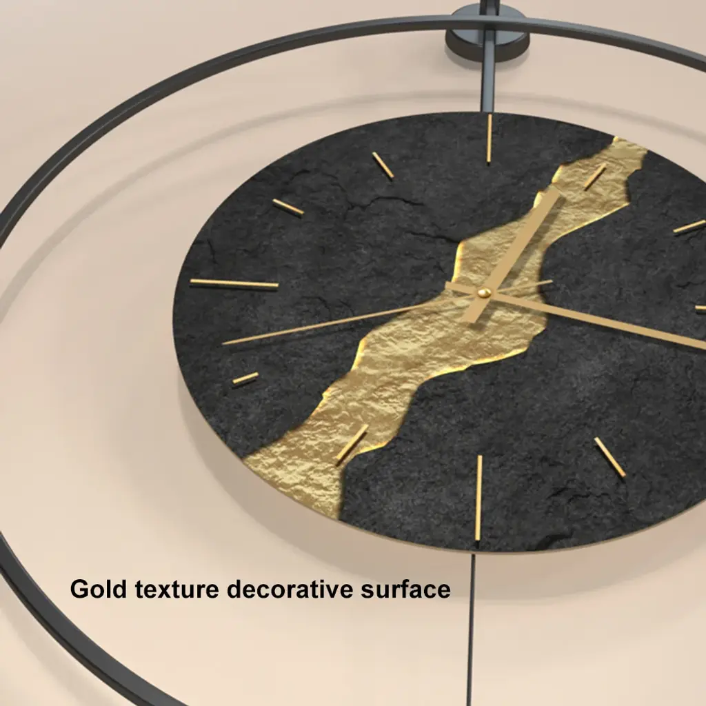 Black & Gold Led Light Pendulum Wall Clock Metal Wall Art Silent Wall Clock