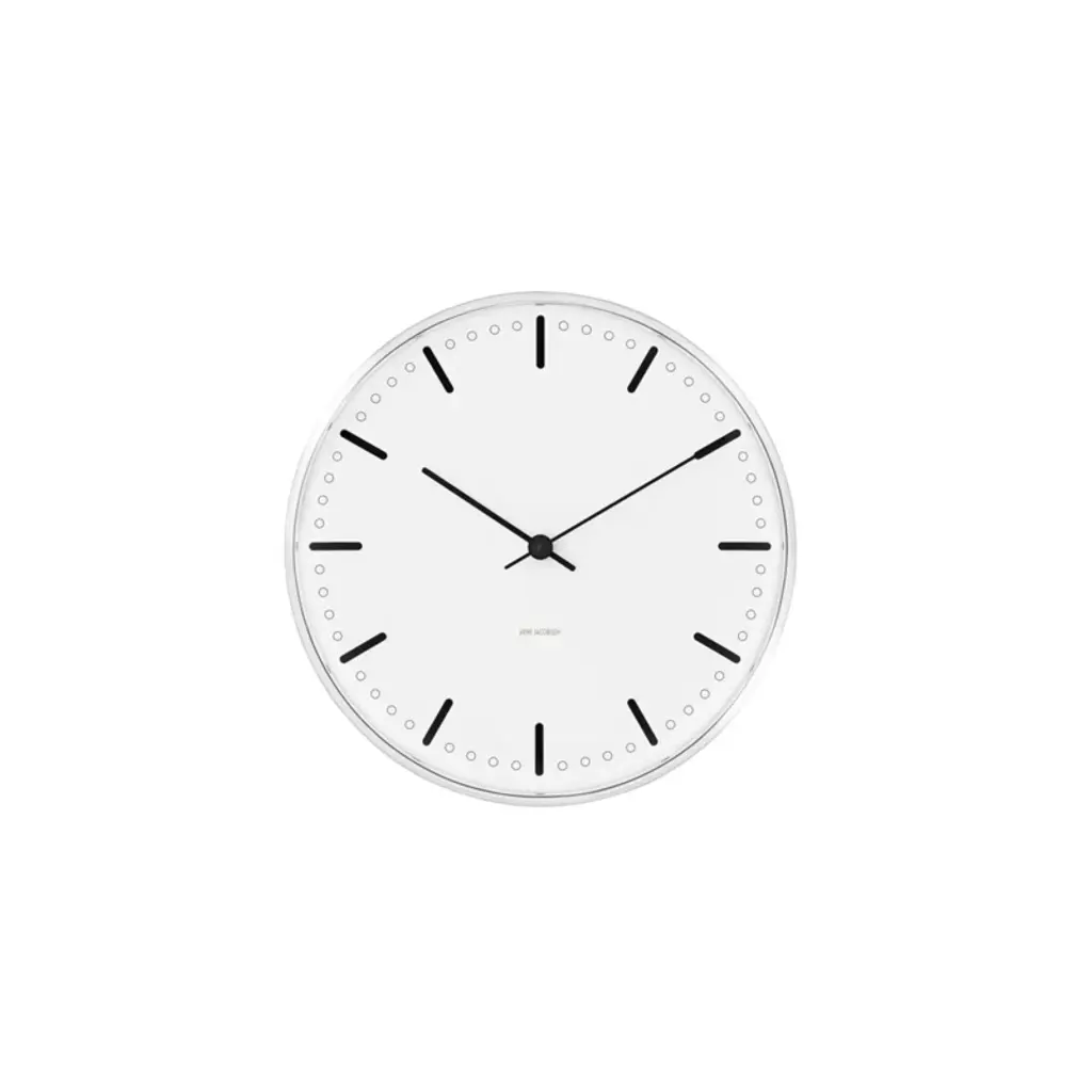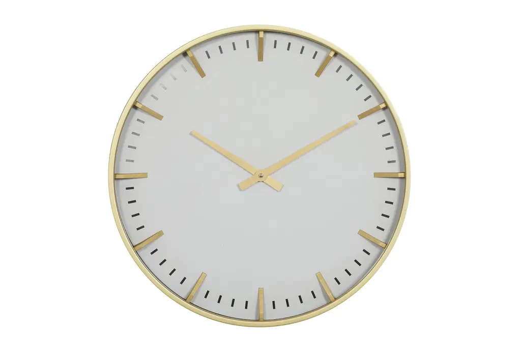 Powered by a completely silent, precision quartz movement for outstanding accuracy and longevity, this minimalist designed wall clock is made with premium quality components including a satin black steel case, crystal-clear glass lens, and metal hands. Requires one AA battery (not included).Specifications:- 12" W x 12" H x 1.75" D- Satin black steel case- Crystal-clear glass lens- White dial with black graphics- Metal hour and minute hands (black)- Sweep second hand (black)- Silent quartz movement (1-year warranty)- One -AA- battery (not included)- Wt: 2 lb., 11 oz.