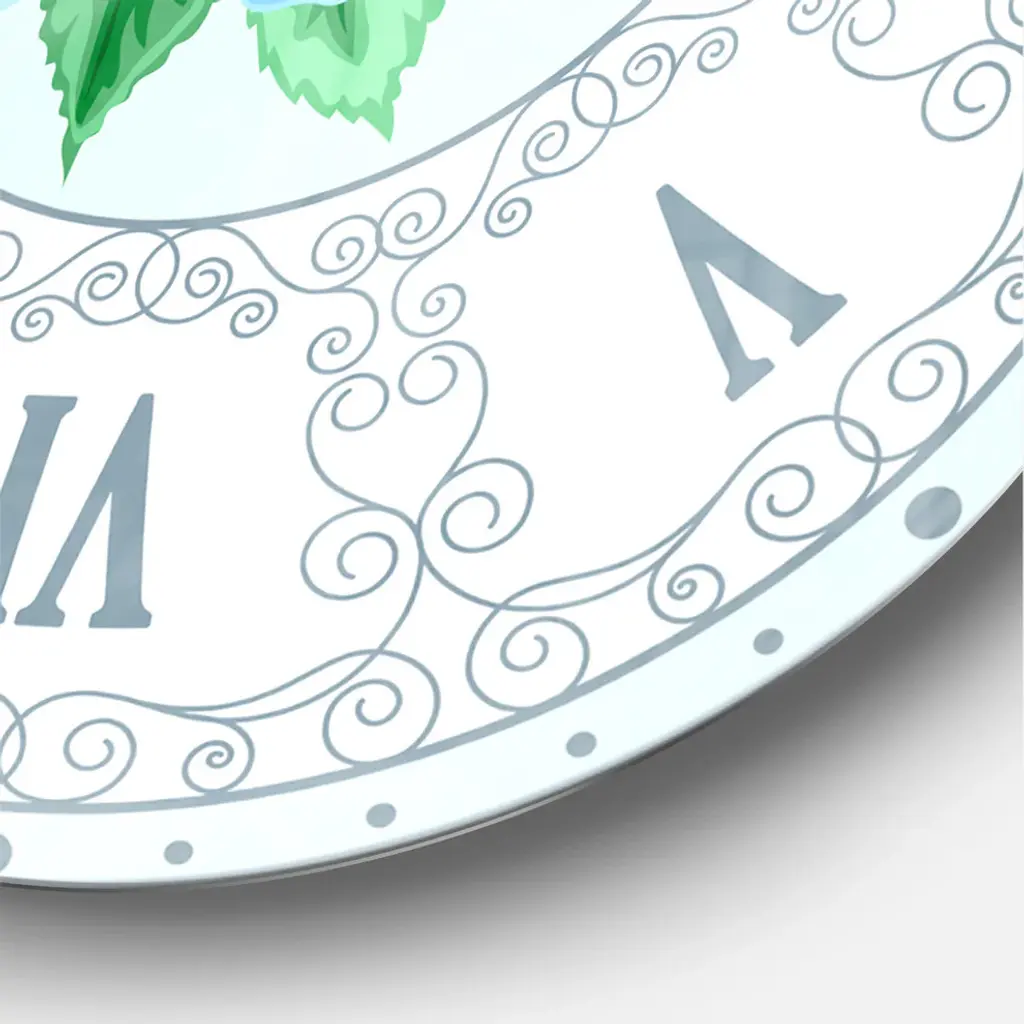 A beautiful addition to any home or office, this Modern & Contemporary round wall clock is made on 100% solid aluminum. It has a highly reflective glossy finish creating a sleek modern look. This Blue Hand drawn Roses Shabby Chic Vintage wall clock arrives completely ready to hang on the wall. Simply insert the �AAA� battery included with your order.Available in several size, this Modern Oversized Clock makes it the focal point of any room.Features - Ultra Gloss Coating ensures colors are extra vibrant with light reflection. - 1mm Aluminum grade sheet metal. - 1-inch mounting frame gives the illusion of artwork floating on the wall. - Mounting brackets and instructions are included. - High quality digital images are created directly into a glossy aluminum panel, producing a stunning and captivating print in the glossy finish of the metal. - Looks better than any photo paper and guaranteed to last at least 20 years. - Easy to clean with a microfiber cloth. - "AAA" battery included with your order. - Easy to hang. - Style: Contemporary - Material: Metal - Shape: RoundSee Options drop down for available sizes.