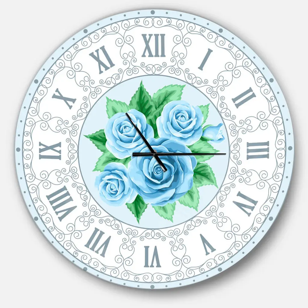 Blue Hand Drawn Roses Shabby Chic Vintage Contemporary Clock, 36x36