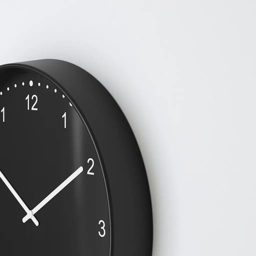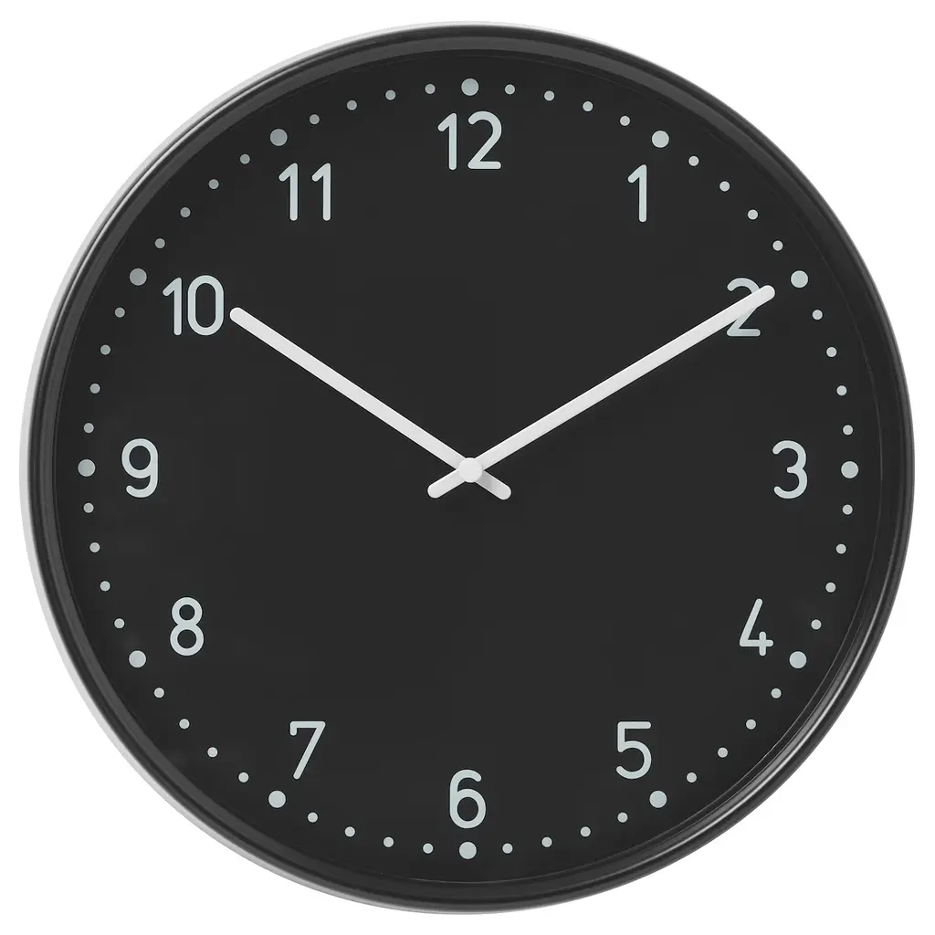 BONDIS Wall clock - black 15 ". Fitted with a quartz movement, it is accurate at keeping time. No disturbing ticking sounds since the clock has a silent quartz movement. Batteries sold separately. IKEA recommends LADDA rechargeable batteries. This clock also works with alkaline batteries, 1xAA.