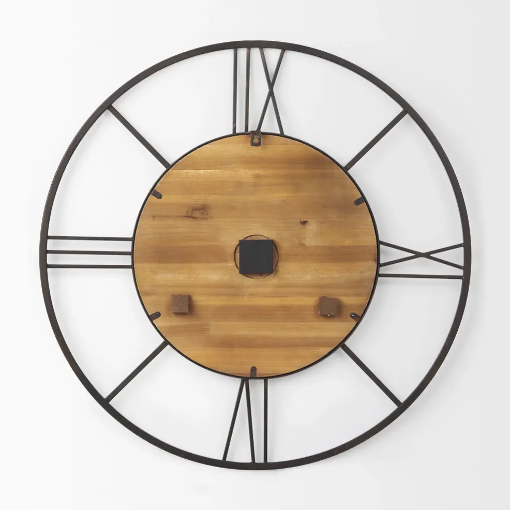 Brielle Black Iron And Brown Wood 30" Round Wall Clock