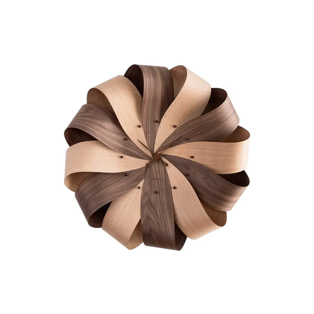 As though buoyed by its namesake Brisa (Spanish for “breeze”), soft folds of wooden strips in oak, walnut or a combination fan out in Nomon’s wall clock from the Barcelona maker’s Soft Collection. Complemented by clock hands and time signals in the same natural wood or polished brass, the timepiece is beautifully crafted by hand in Spain and powered by a precision German UTS movement